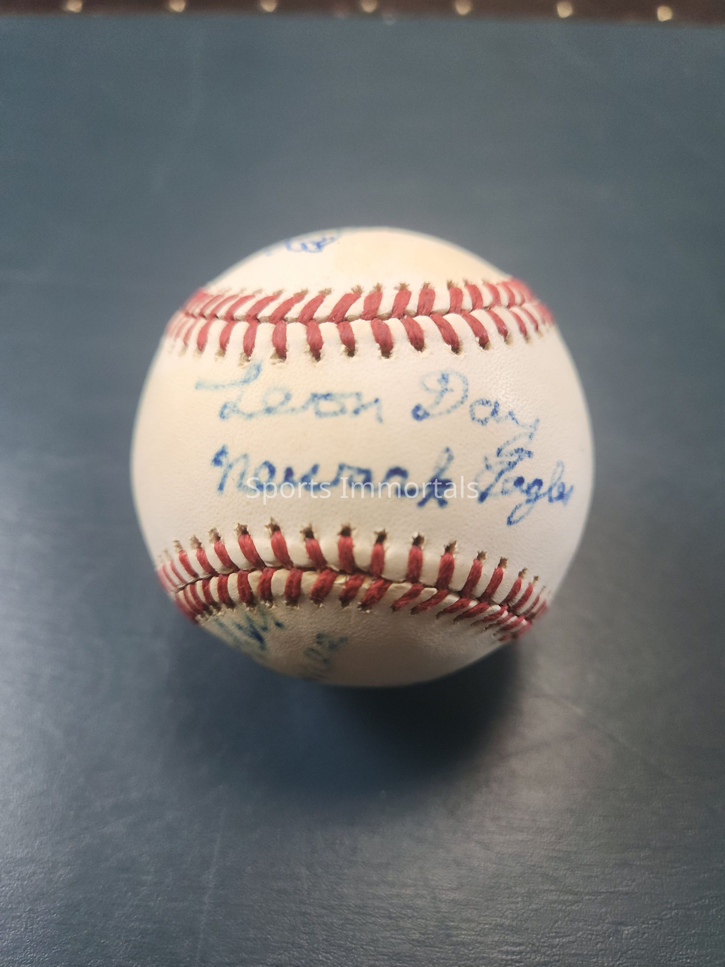 Autographed Baseball with inscription "Best Pitchers Satchel Paige and Slim Jones, Best Hitters Buck Leonard and Josh Gibson"