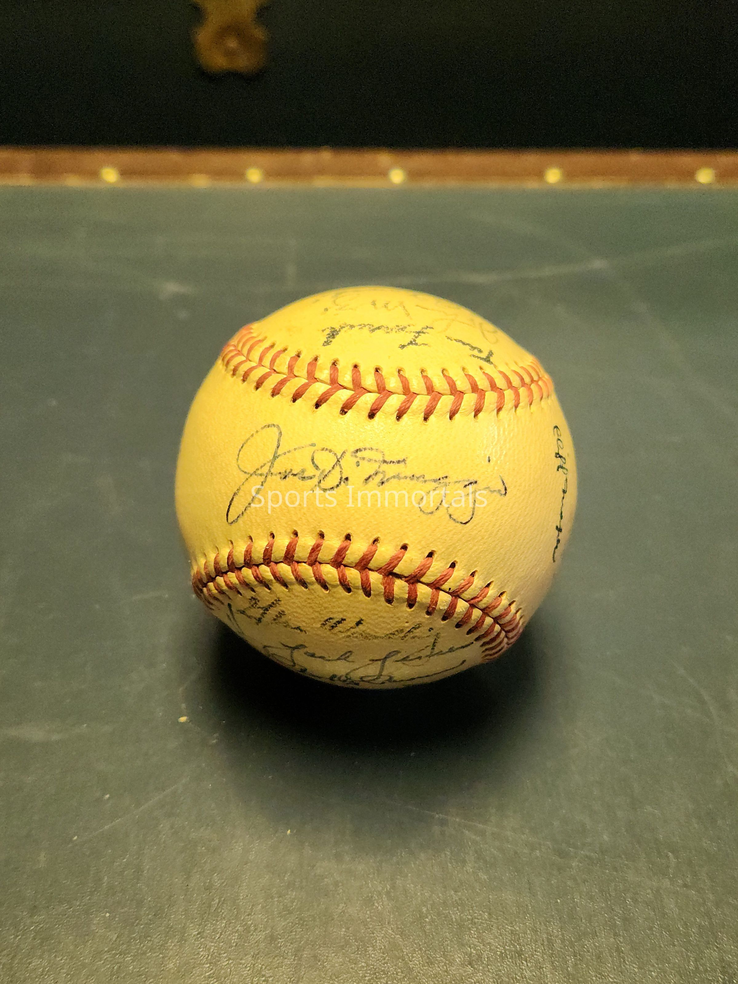 Baseball Signed By Joe Dimaggio, Frank Crosetti, Charlie Sullivan, Ed Lopat, Casey Stengel, Bobby Brown, Tommy Byrne, George Stevenson, Yogi Berra, Gene Woodling, Tom Henrich, Charles Keller, Ralph Buxton, Bill Johnson, Clarence Marshall, Gus ?? And Phil