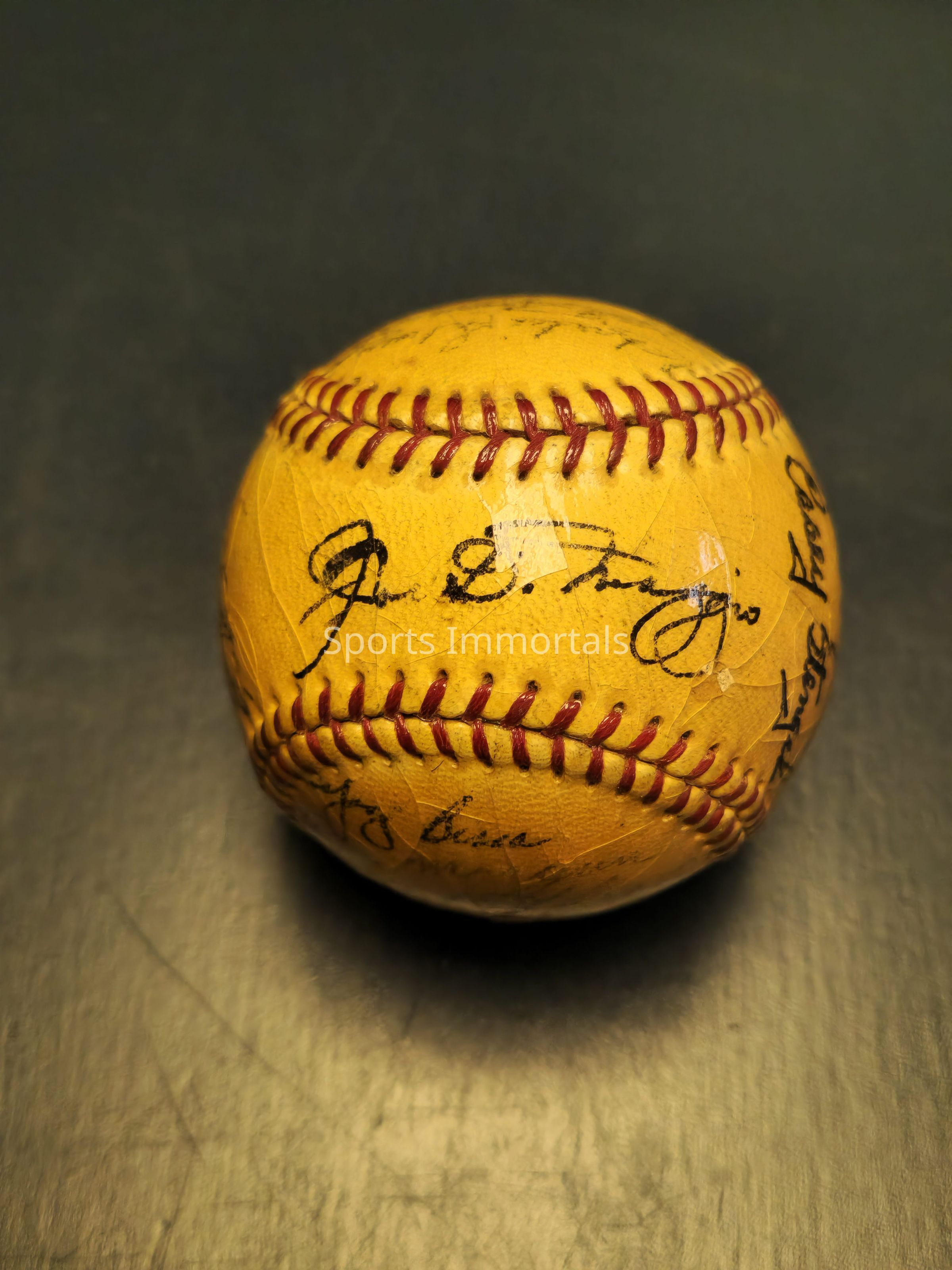Baseball Signed By Early 1950's Yankees; Joe DiMaggio, Yogi Berra, Mickey Mantle, Frank Crosetti, Casey Stengel, Ed Lopat, Phil Rizzuto , Allie Reynolds, Ralph Houk, Johnny Mize and others