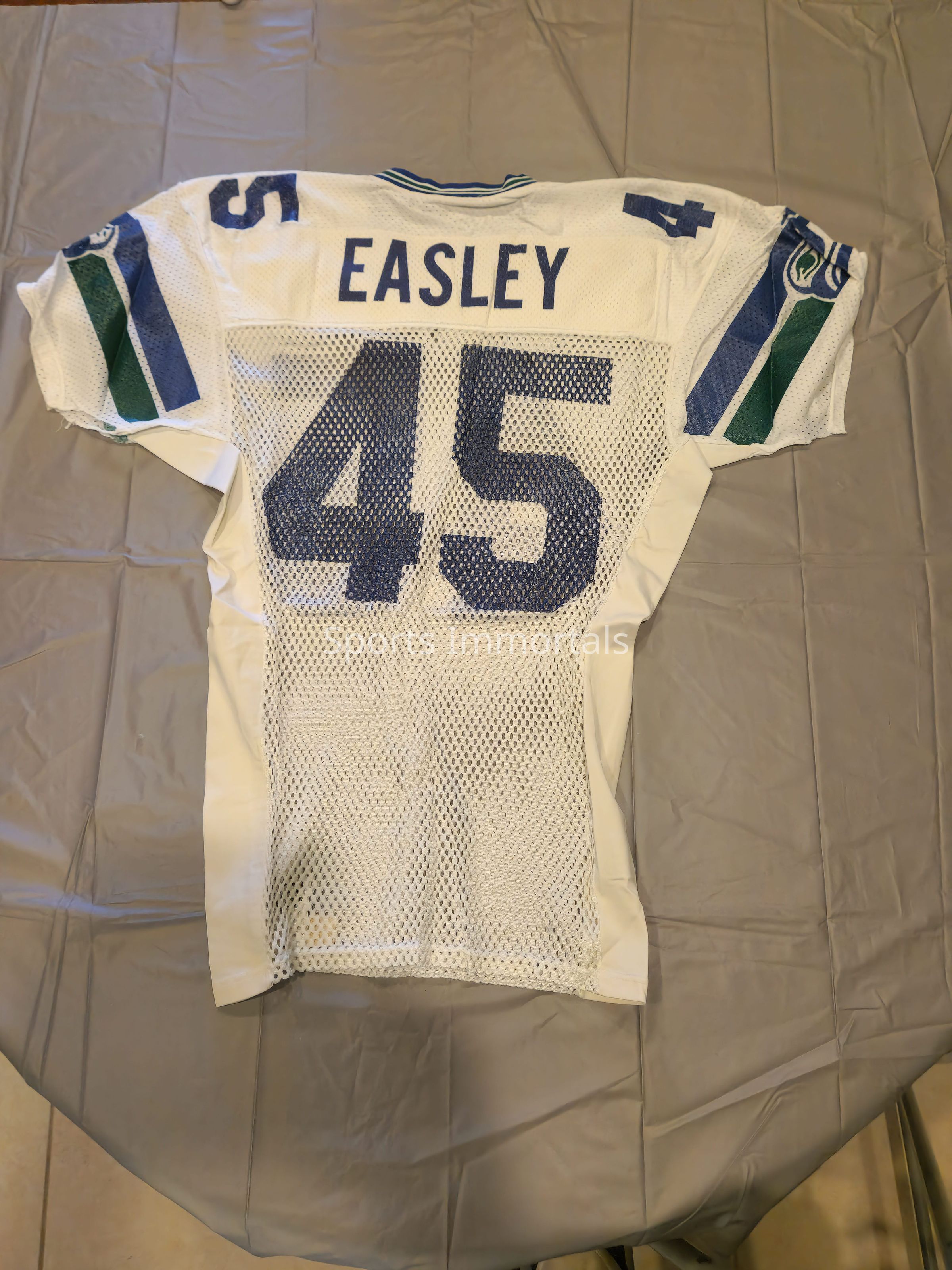 1985 game used Seattle Seahawks white Sandknit jersey