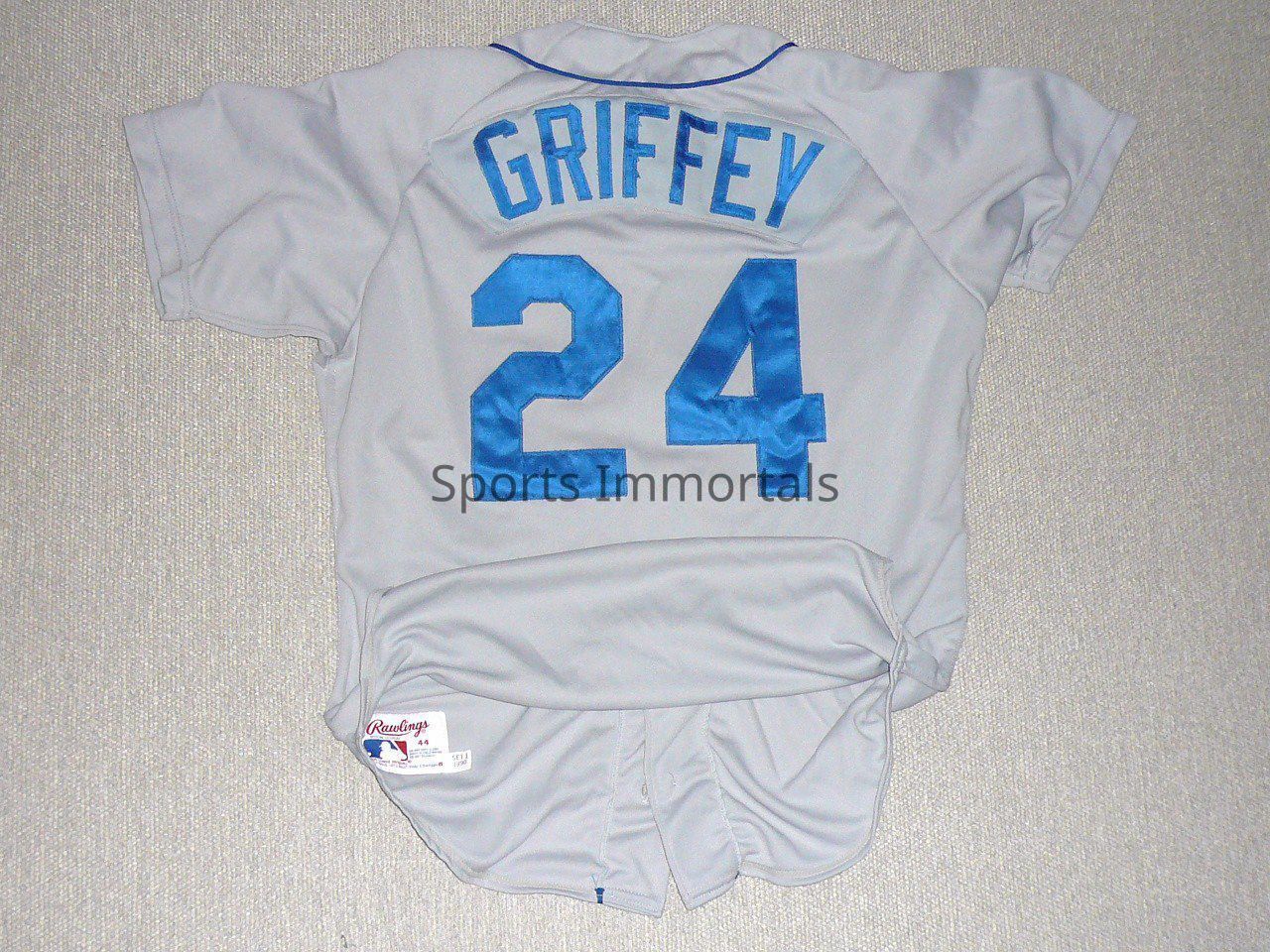 1990 Seattle Mariners Rawling (44) Set 1 Grey Game Worn Jersey. Button Down. #24, Also Autographed Card. Won Gold Glove this season.