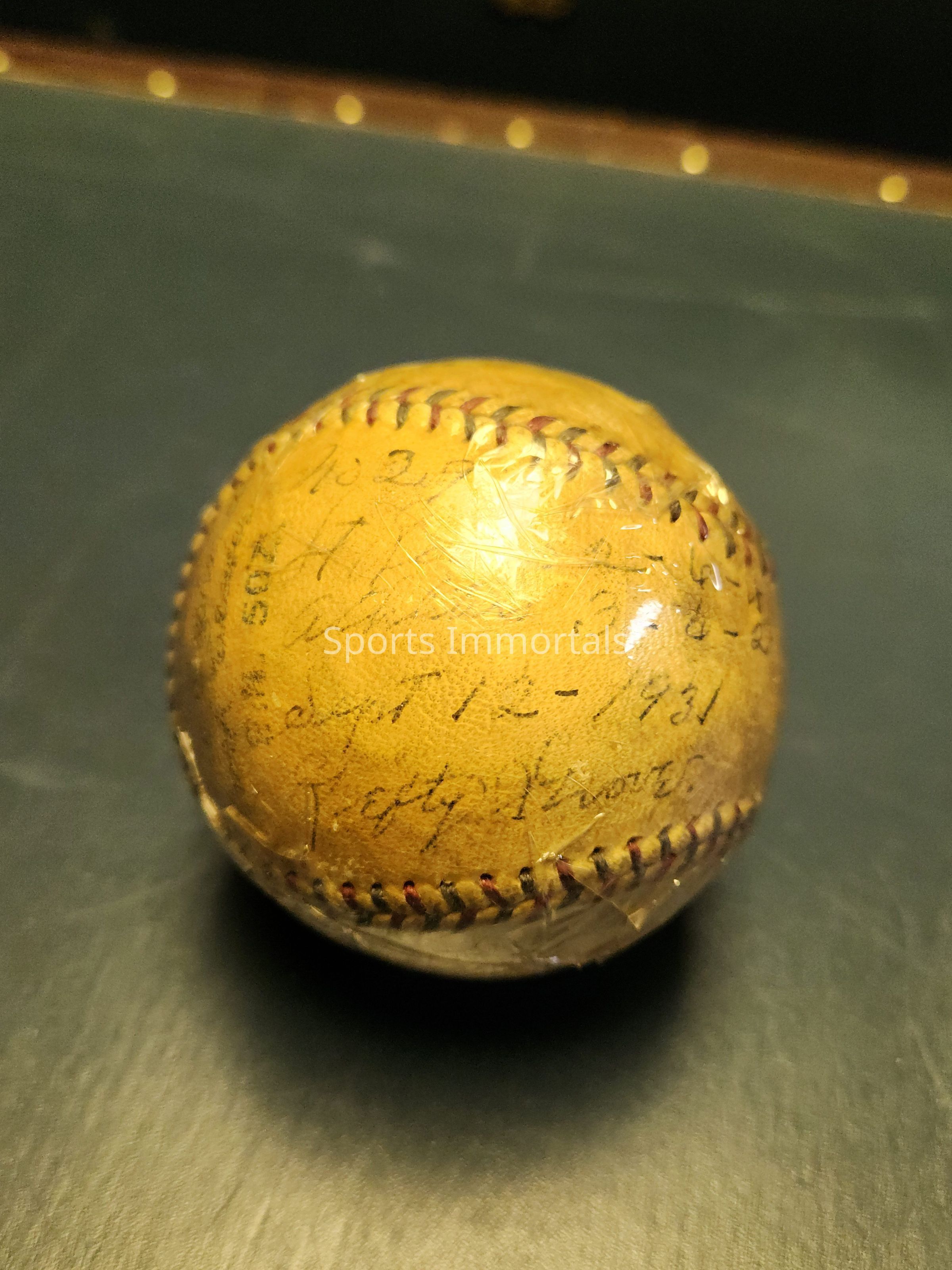Autographed Baseball By Grove, Lefty For Grove, Lefty's 29th Victory In Historic 31 Victory Season In 1931. Ball Has Been Labeled "Victory #29, St. Louis 2 Athletics 3." Date 9/12/31