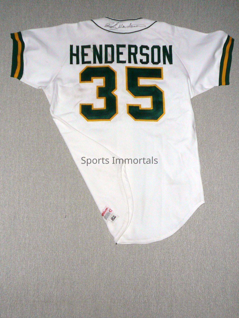1982 Oakland Athletics Wilson (42) White Game Worn Jersey Button Down From Year He Set Stolen Base Record Of 130. Date On Bottom Front. Signed On Front And Back. 335. Great Use. Many Stains.