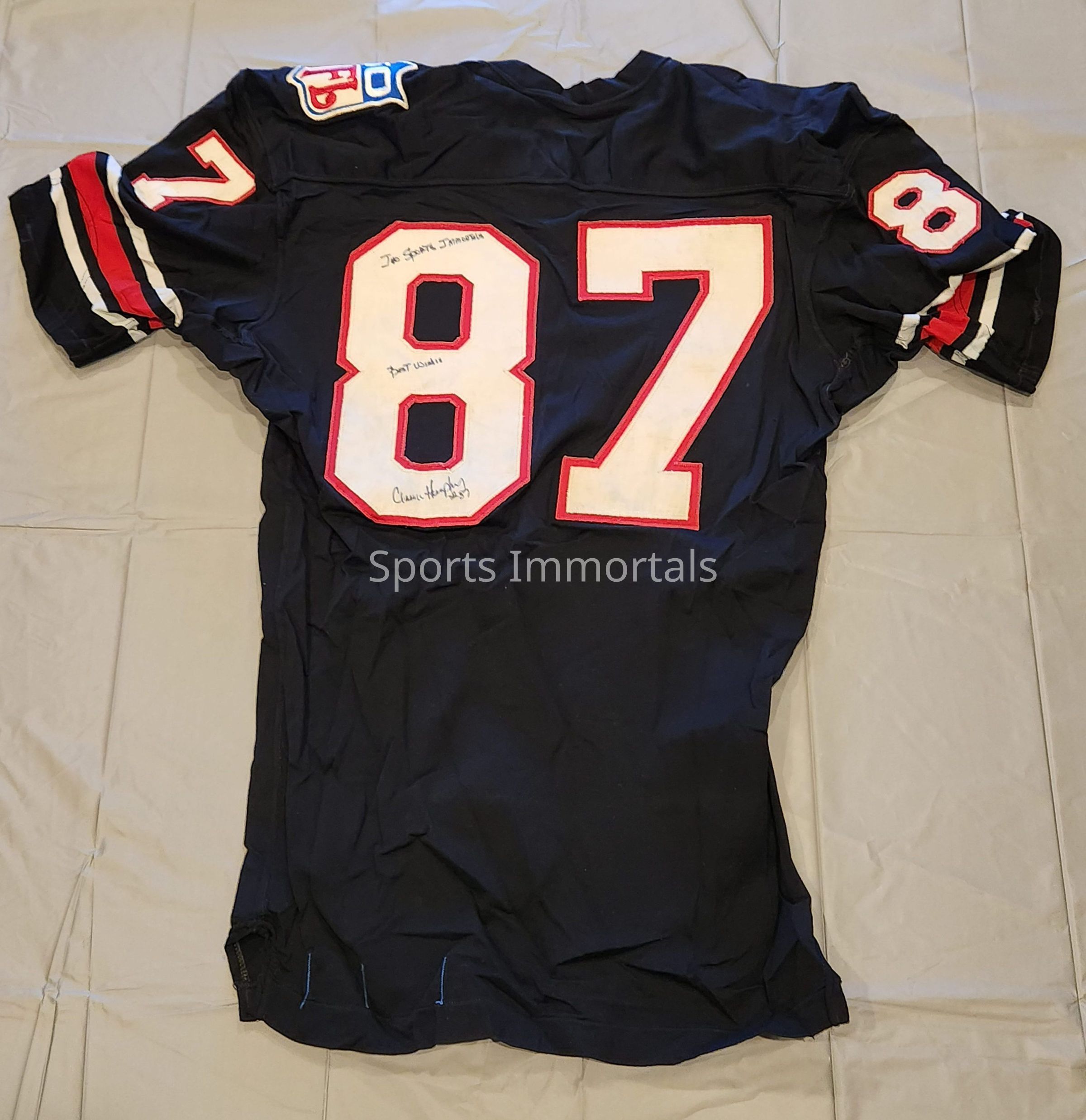 Game used and signed Atlanta Falcons black jersey signed "to Sports Immortals Best Wishes"