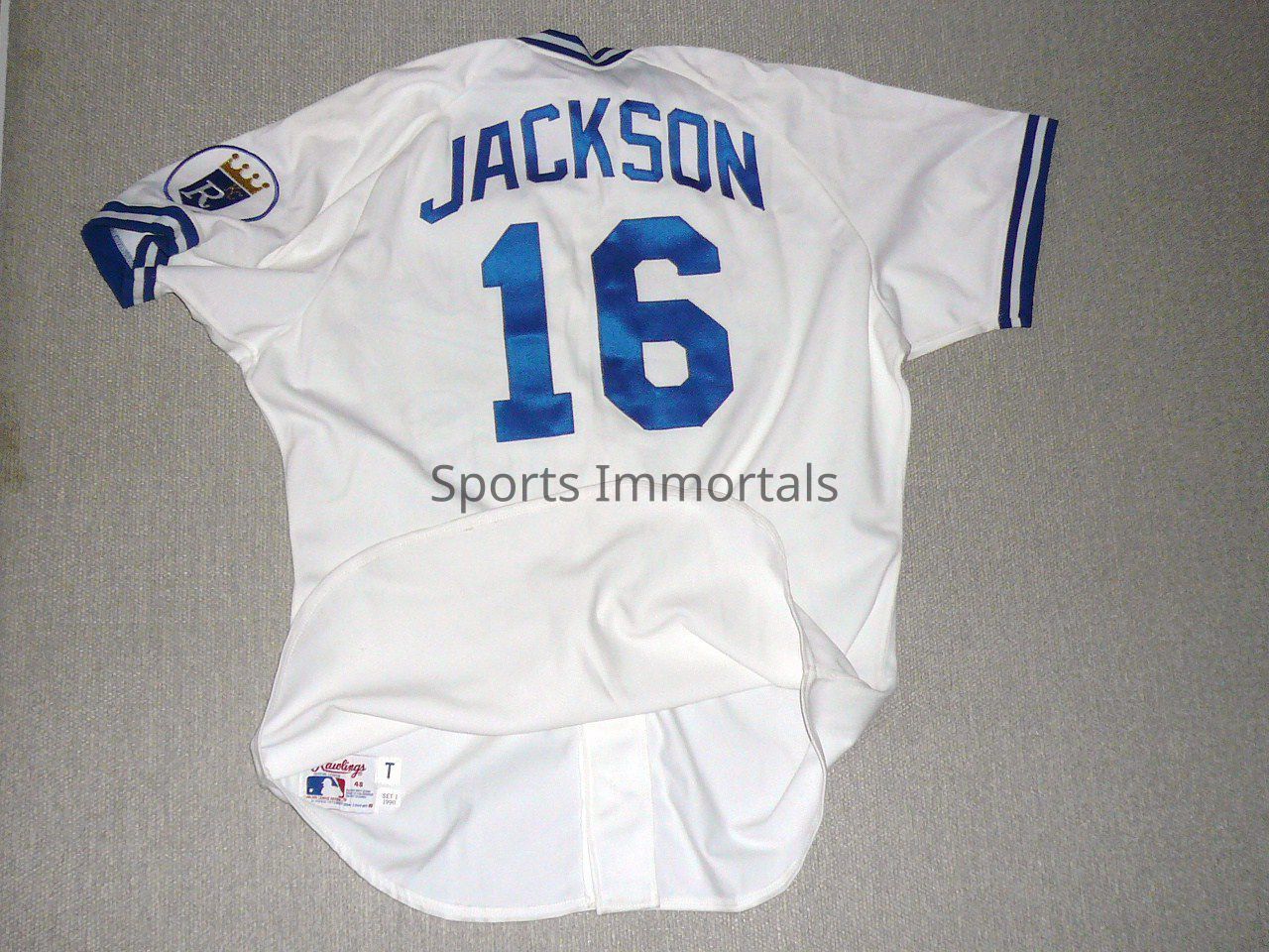 1990 Rawlings (48) Home Game Worn Jersey Set 1. Button Down. #16. T Stitch On Bottom Inside.