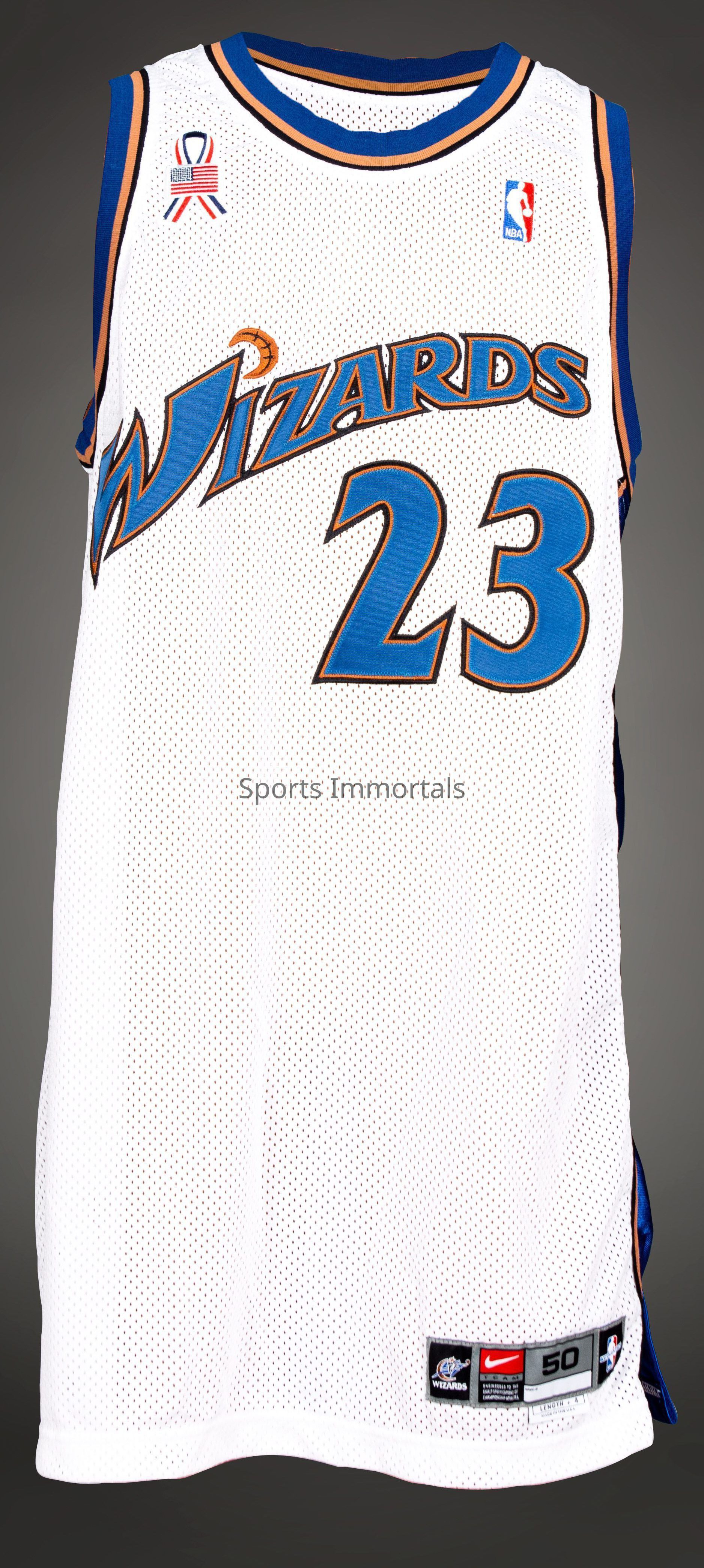 Game Worn Wizards Jersey. It Has The 9/11 Patch With USA Flag On Right Chest Area