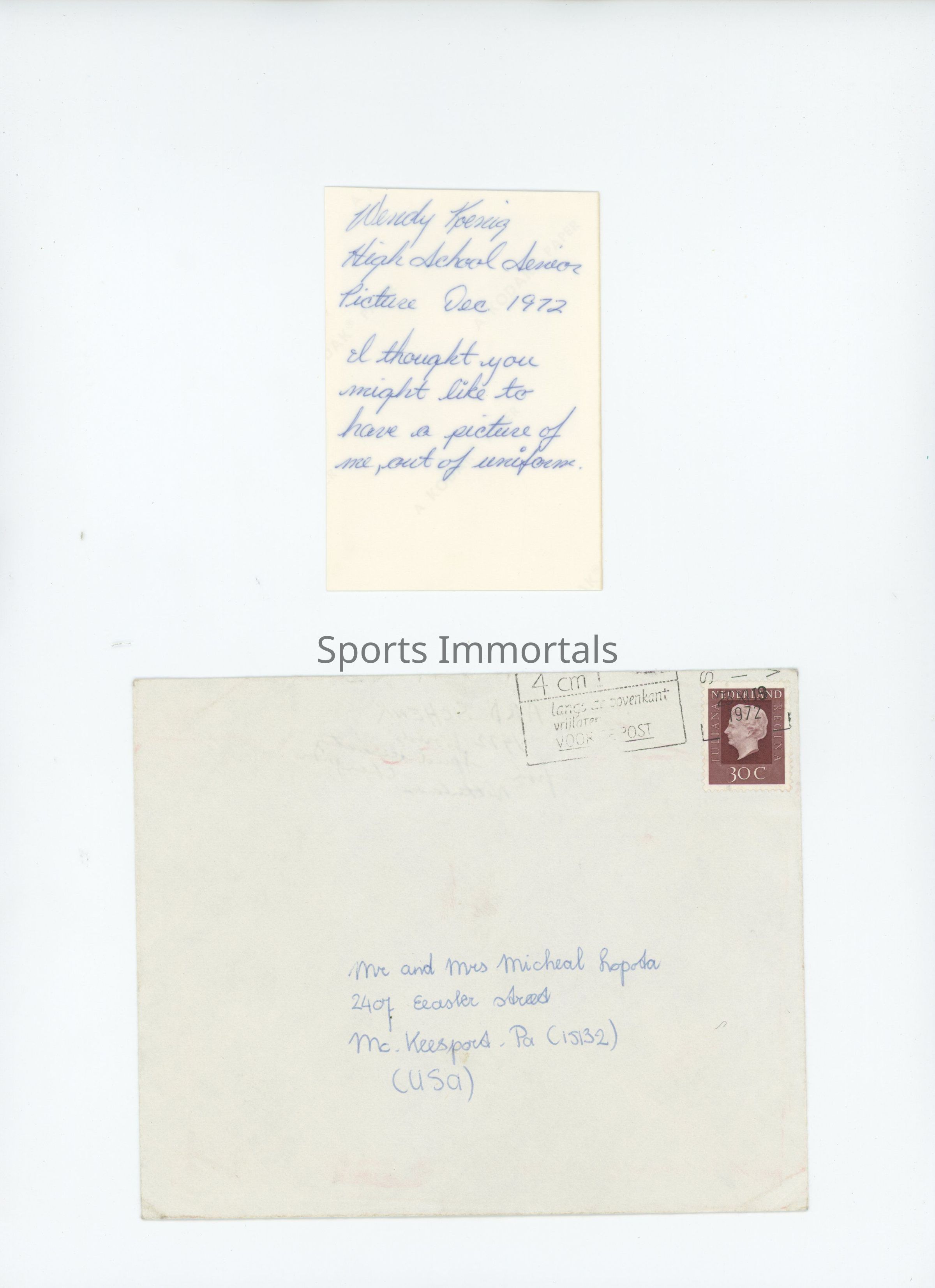 High school senior year photo with note written on back to Michael Lopota