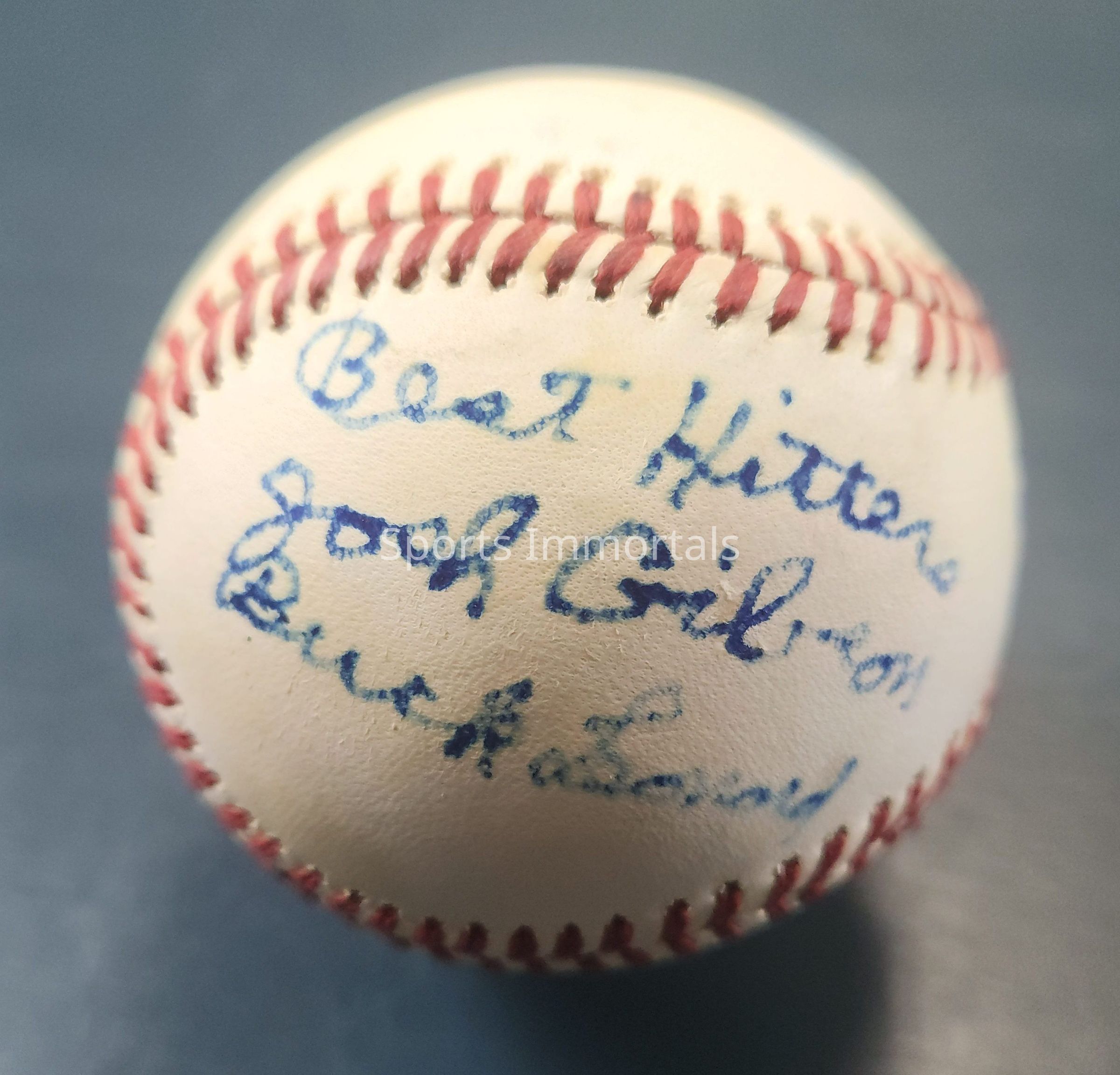 Autographed Baseball And Day States Best Hitters Were Gibson And Leonard And Best Pitchers Slim Jones And Paige