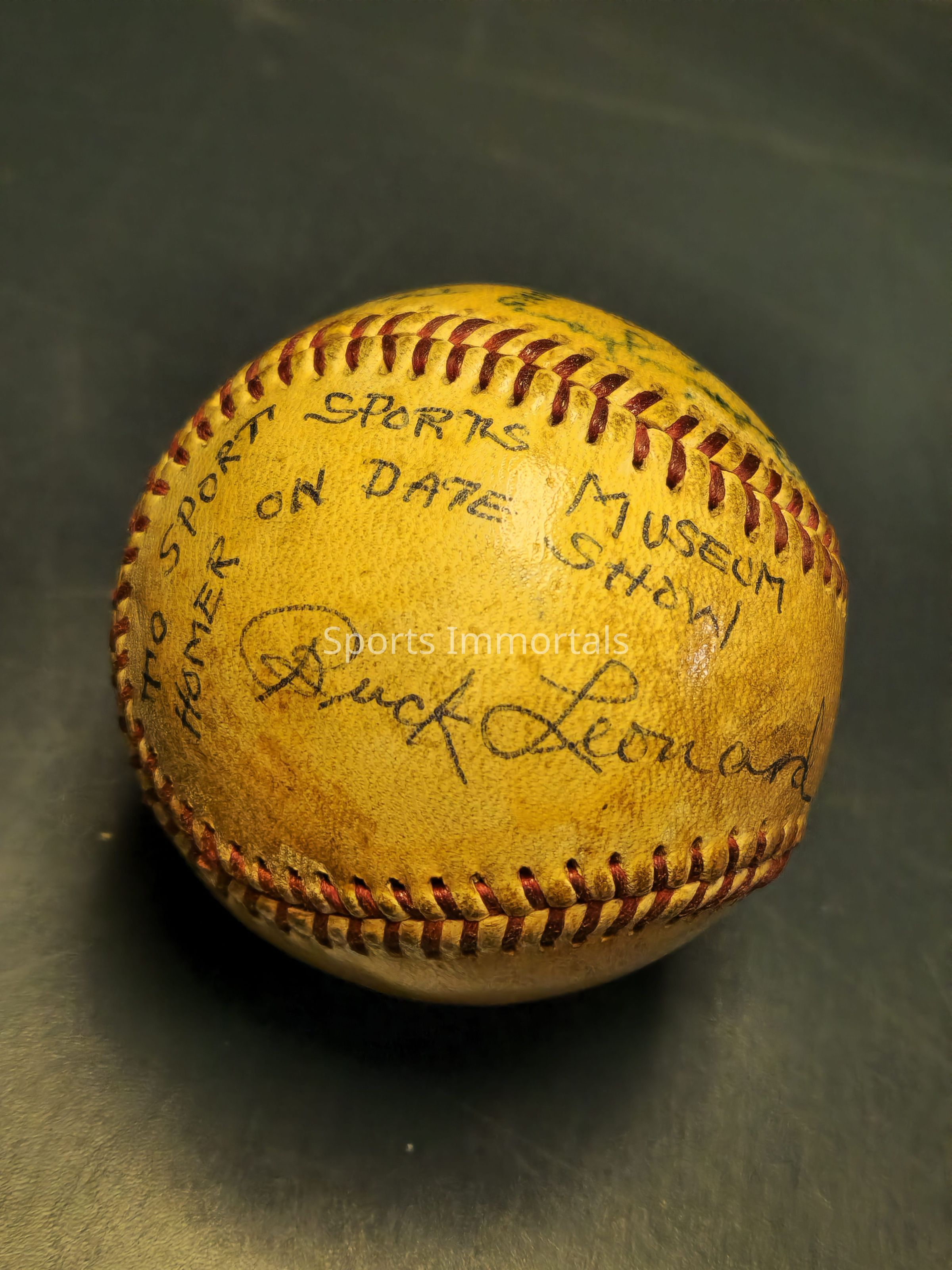 Autographed Home Run Baseball signed by Leonard and inscribed that he hit a home run on 9/30/1948
