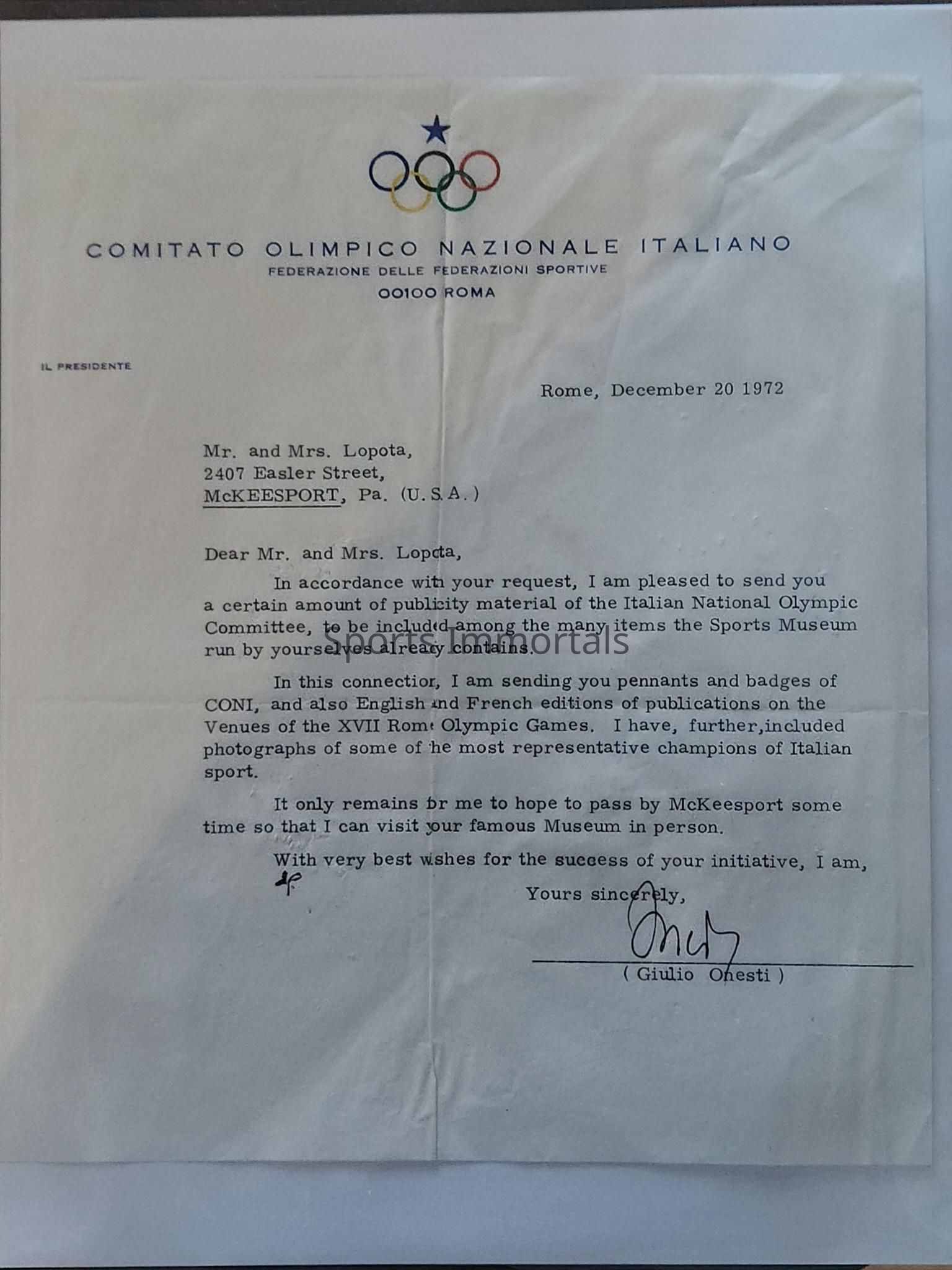 Letter from Italian Olympic Committee