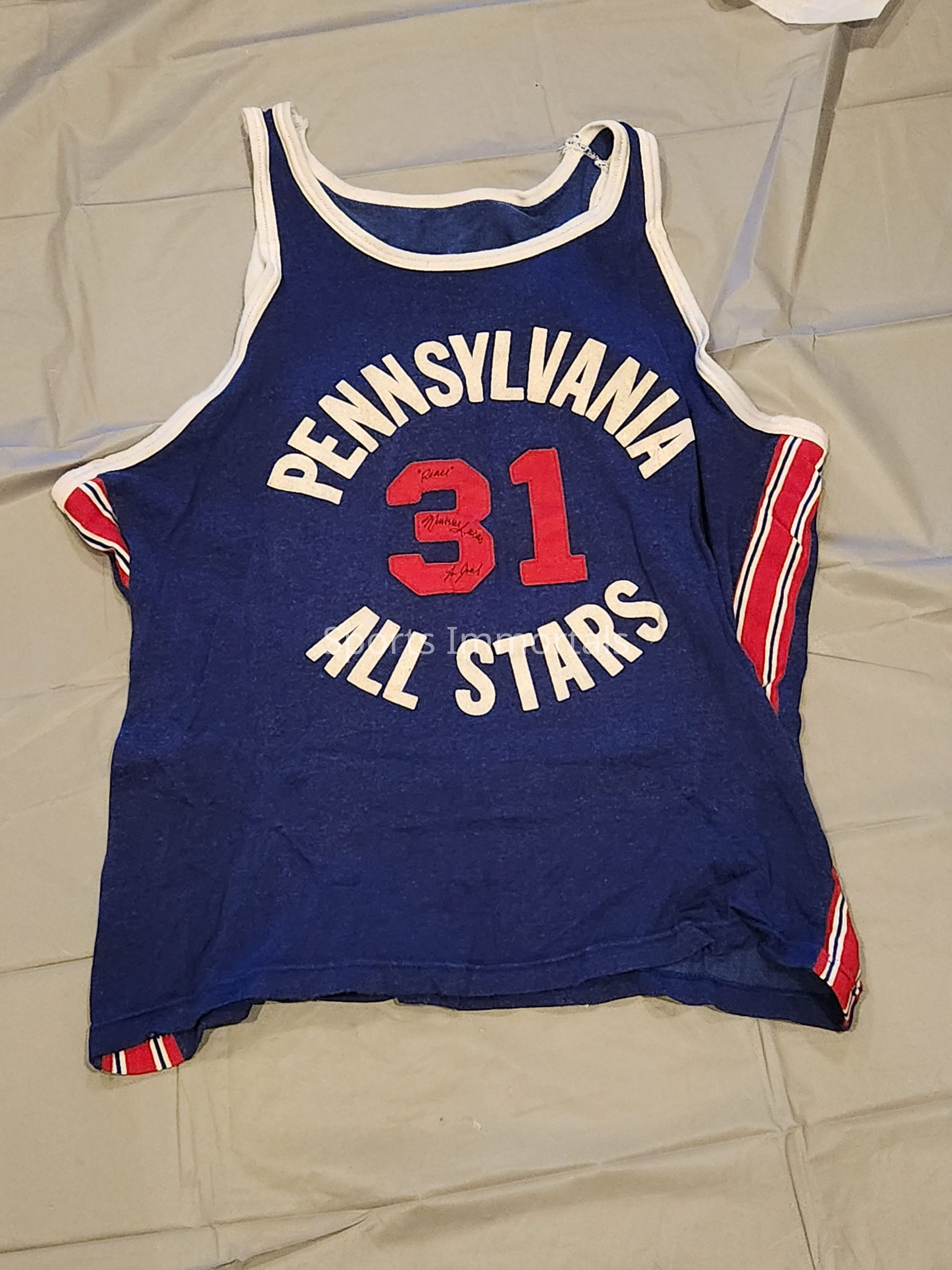 Autographed Game Worn Jersey From 1973 Roundball Classic And Autographed Program. Signed "To Joel, Peace"