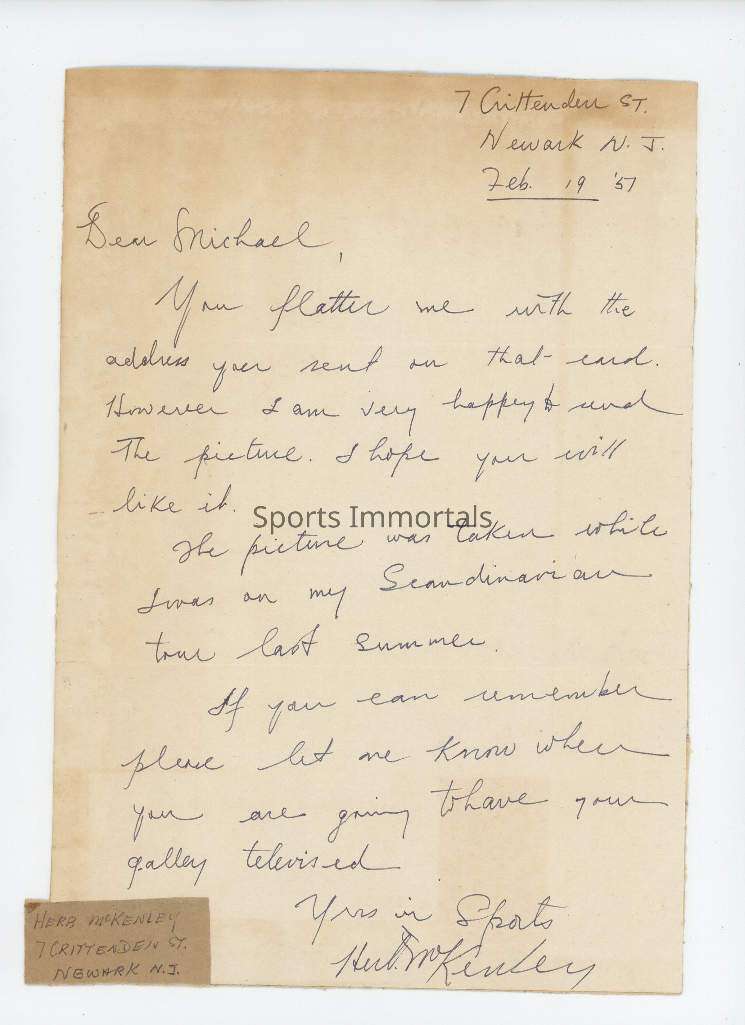 Hand Written Letter And Photo From Gold Medal Winner In 1952 Olympics In Helsinki