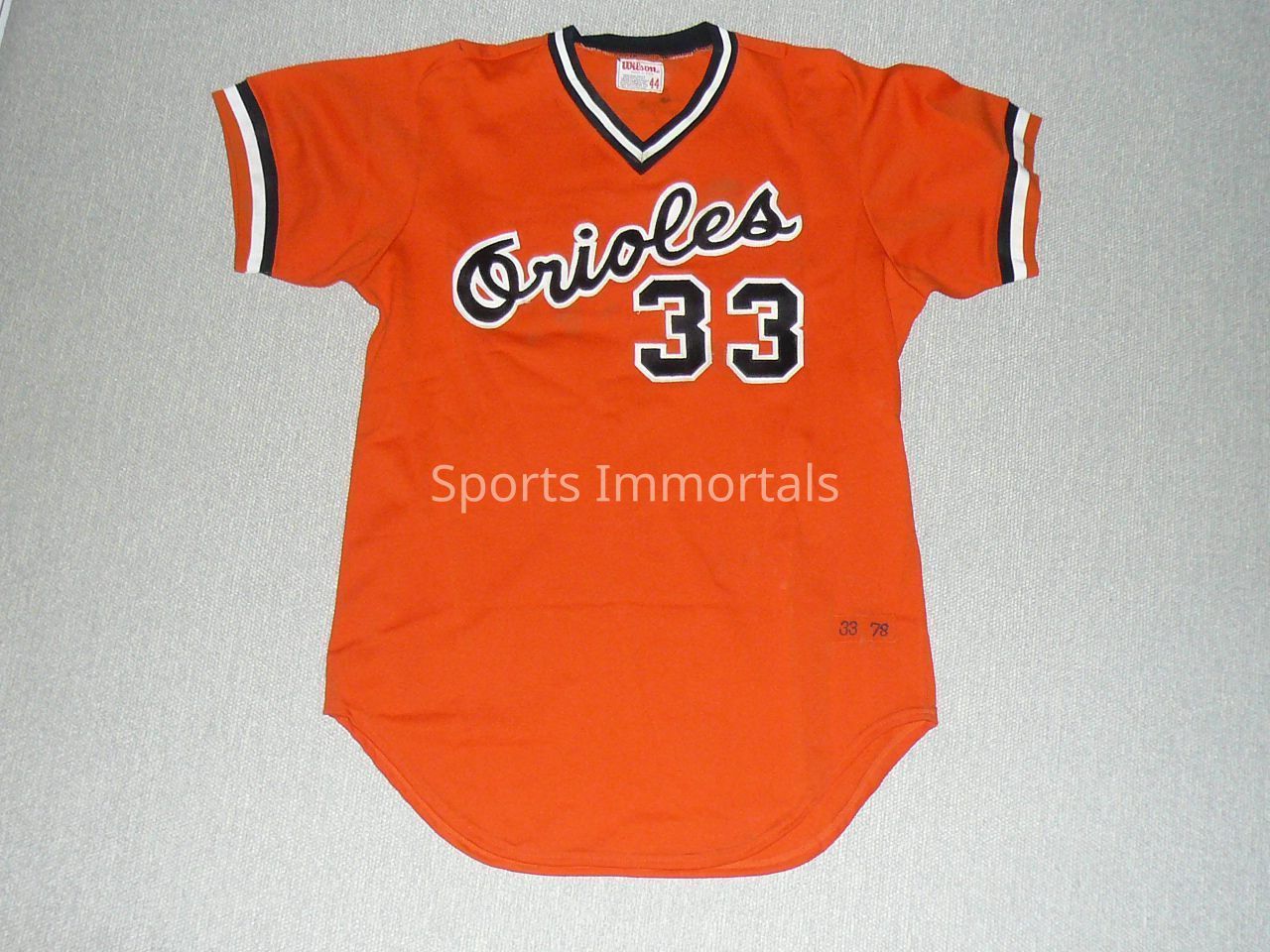 1978 Wilson (44) Orange Game Worn Jersey. #33. No Buttons. Signed Name On Back.