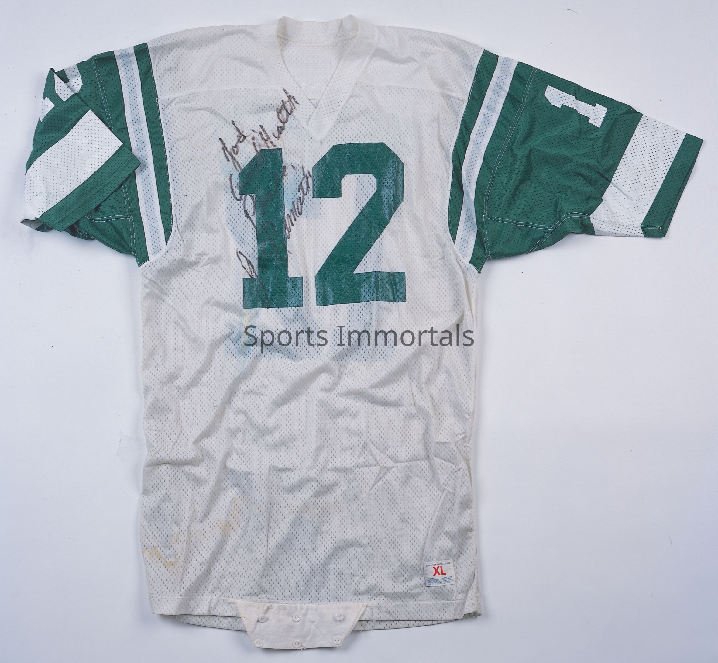 Wilson Autographed White Jersey From Early 1970's Attributed To Being Worn By Namath…Signed "Good Health Joel"…Has Extra Buttons On Bottom. Received From Equipment Man From Jets