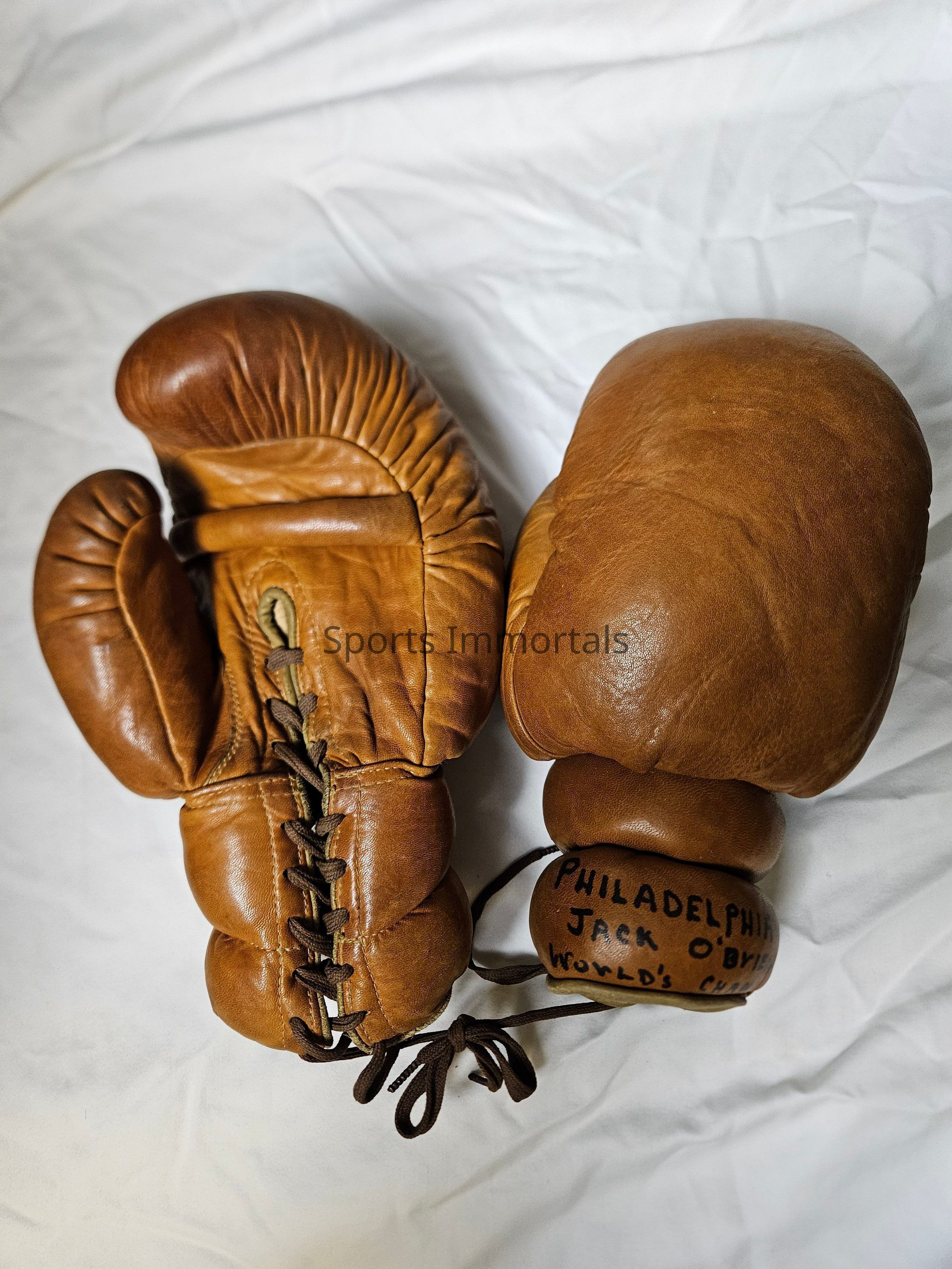 Gloves Used By O'Brien When He Put On An Exhibition With Anthony Drexel Biddle (Banking Magnate) In Philadelphia