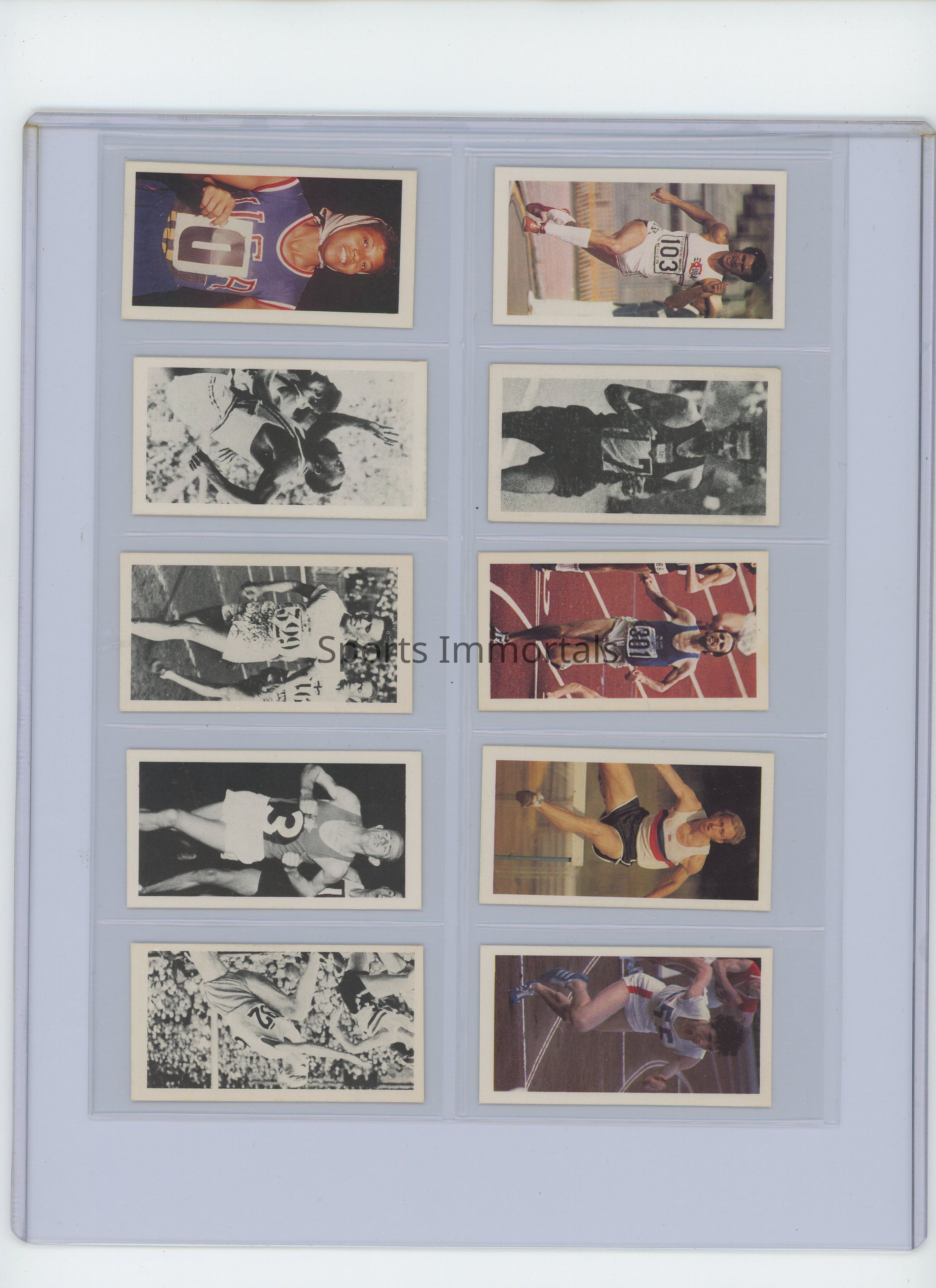 Set Of 40 Cards Including Some Of The Greatest Athletes Including Jesse Owens, Paavo Nurmi, Emil Zatopek, Wilma Rudolph, Bob Beamon, Nadia Comaneci, Olga Korbut, Johnny Weissmuller, Muhammad Ali, John Kelly, Sonja Henie And Jean Claude Killy