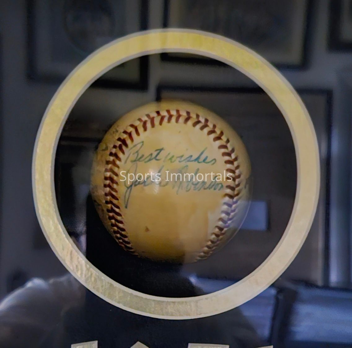 Autographed Baseball Signed In Bold Black Ink, "Best Wishes" Jackie Robinson On Sweet Spot, But Include Other Signatures. Montage Includes A Giclee