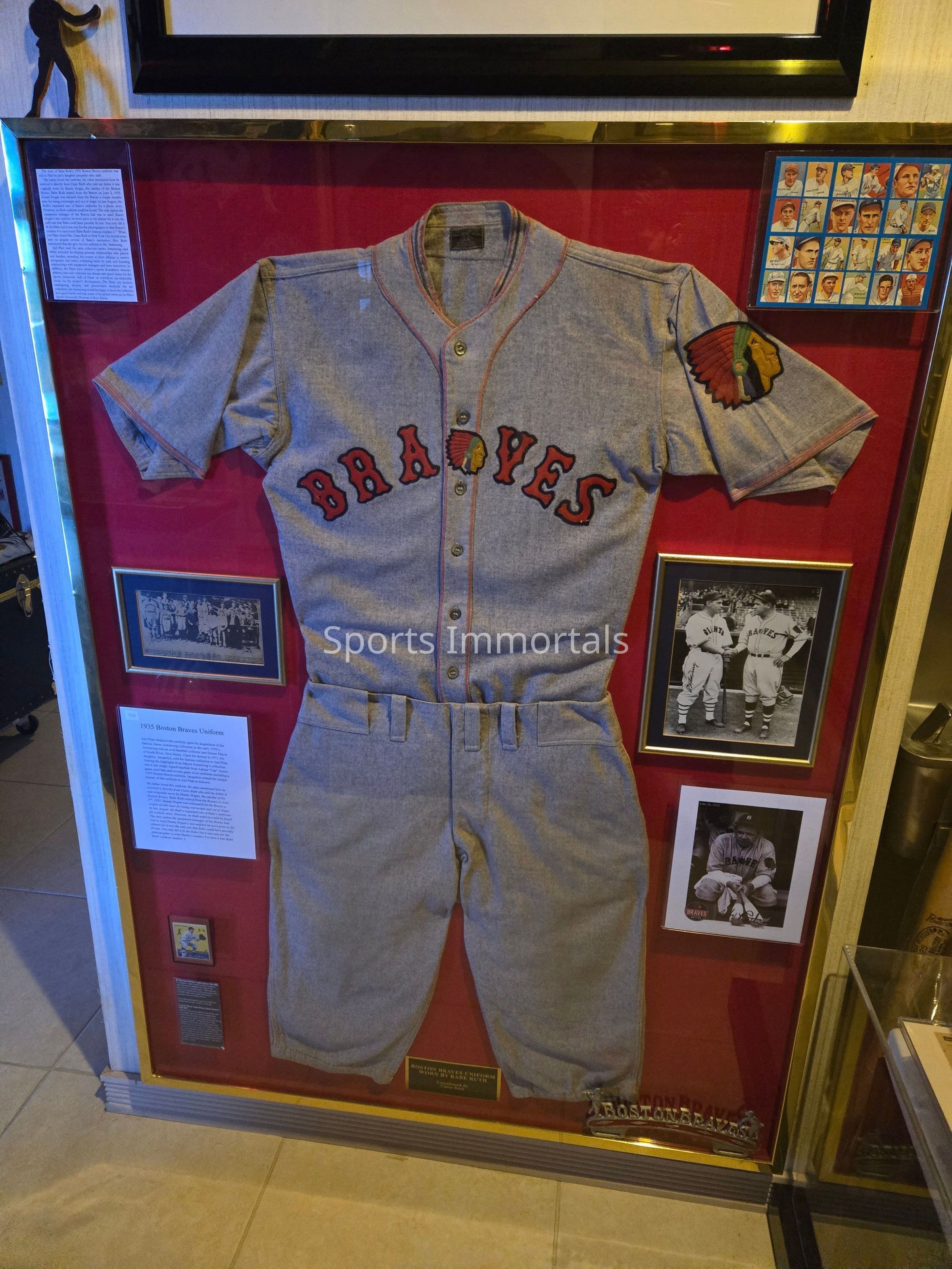 1935 Boston Braves Uniform Attributed To Being Worn By Ruth For A Photo Op. Grey Uniform…Came From Armstrong Who Got It From Babe's Wife…It Is Believed Ruth Wore This Uniform For A Photo Op Before They Gave Him A New One..It Originally Belonged To Catcher, Frank Hogan, It Was The Only One Large Enough For Him When He First Arrived In Boston. Claire Ruth Kept It And Later Gave It To Her Daughter