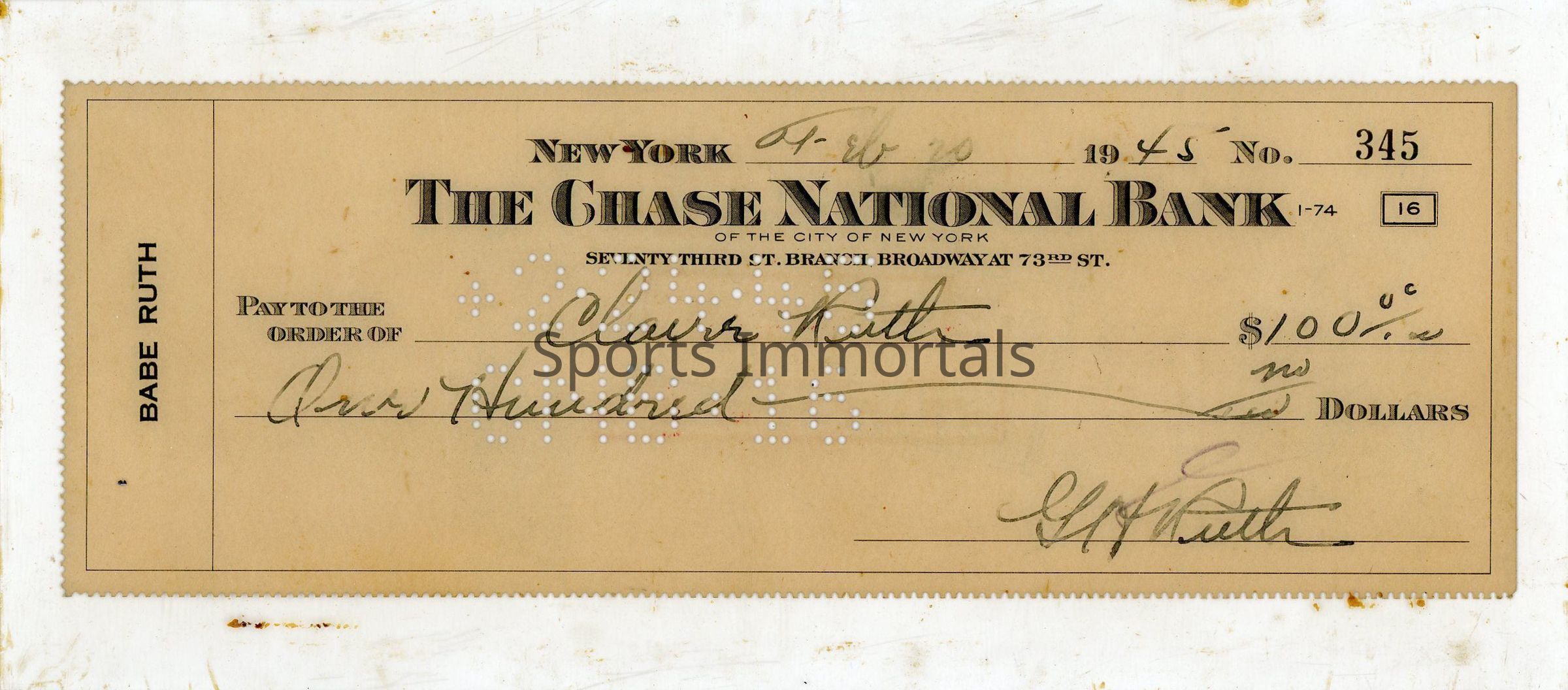 Autographed Check Dated Feb. 20, 1945; Signed Twice By Ruth