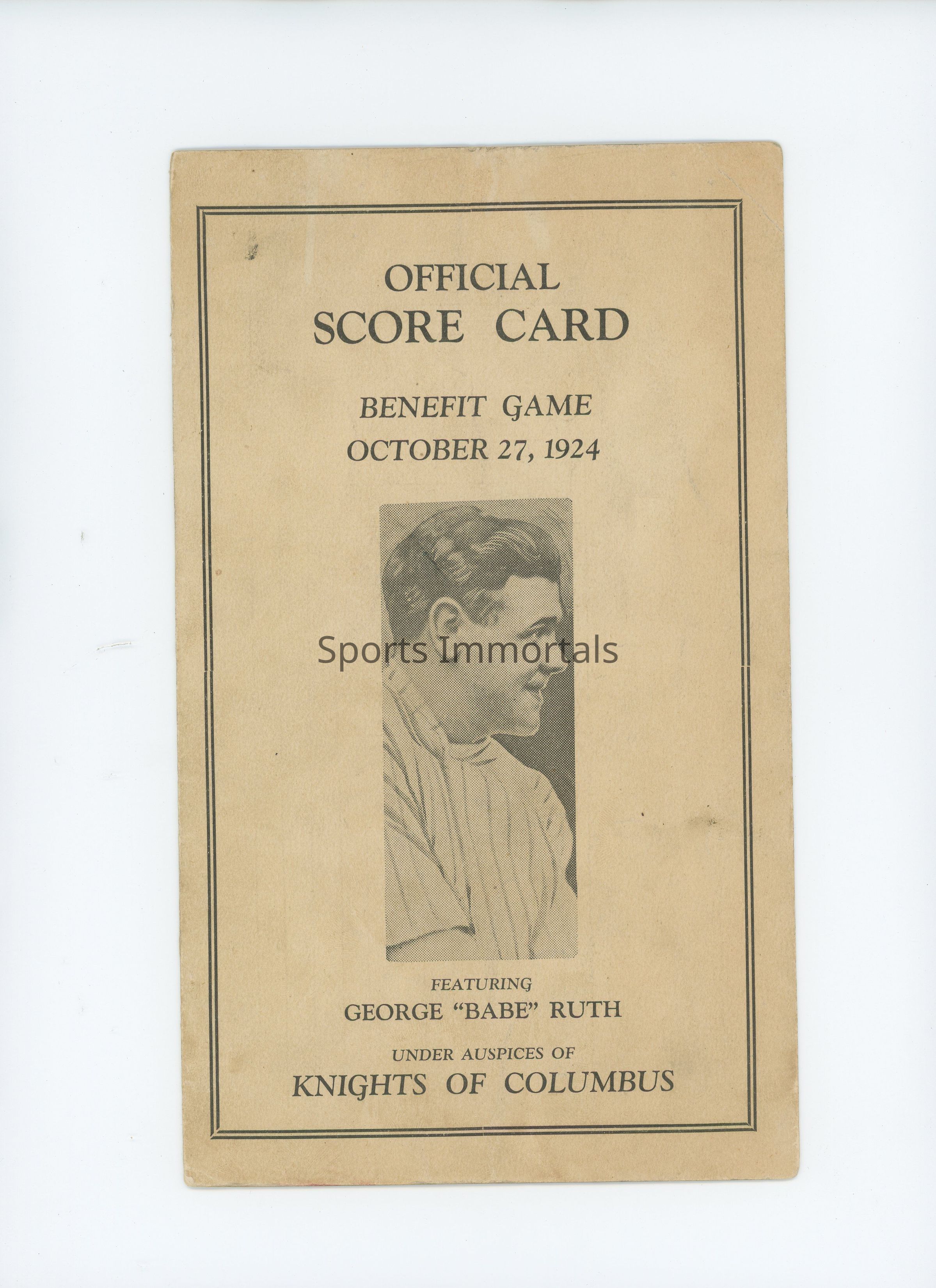 Benefit Game Official Scorecard From 10/27/24 Featuring Babe Ruth