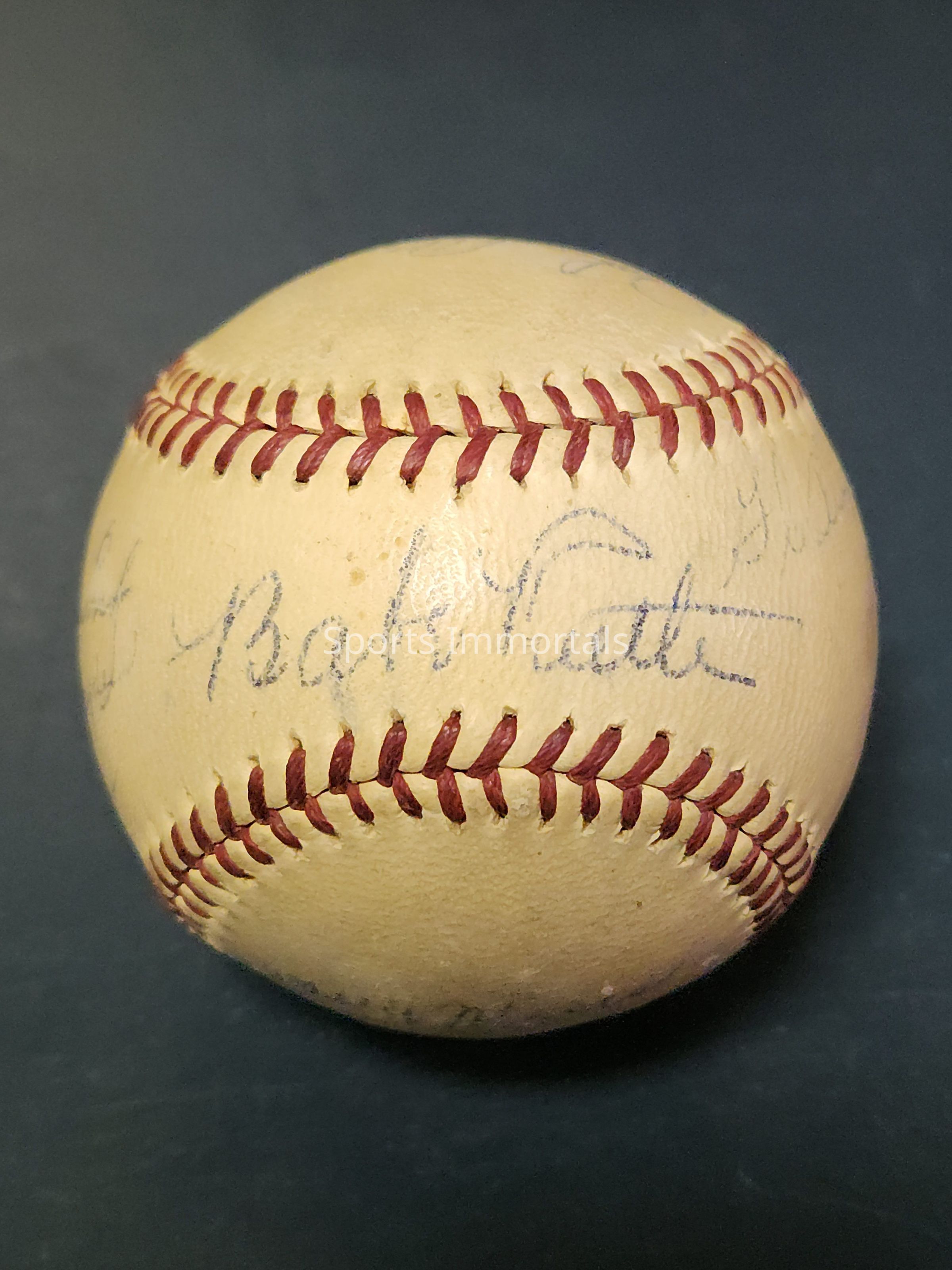 Baseball Autographed By Babe Ruth, Grover Cleveland Alexander, Joe Medwick, Arky Vaughn, Wally Moses, Johnny Allen, Bill Jurges