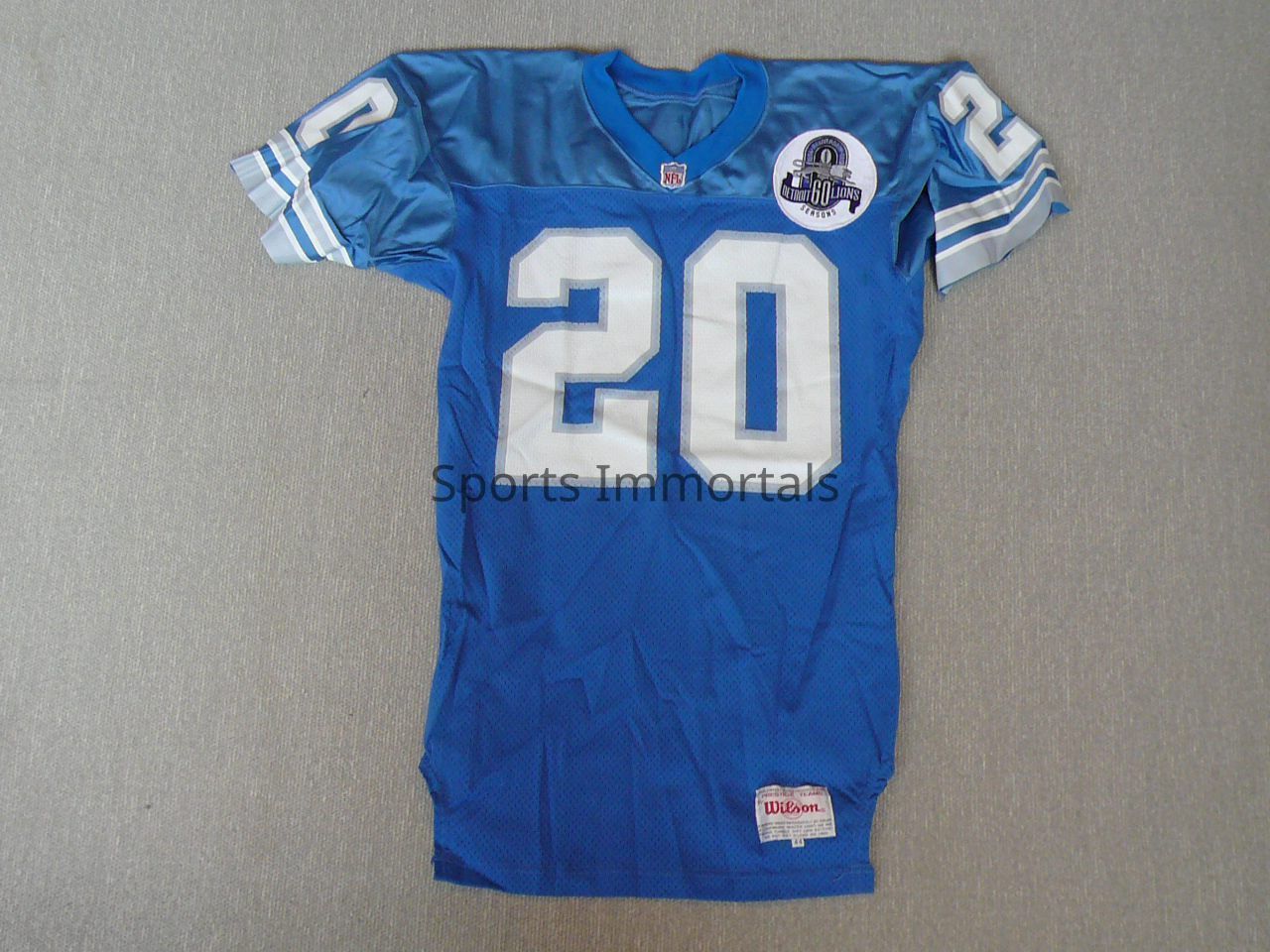Game Worn Lions Jersey. Blue Wilson Size 44 With 60th Season Patch
