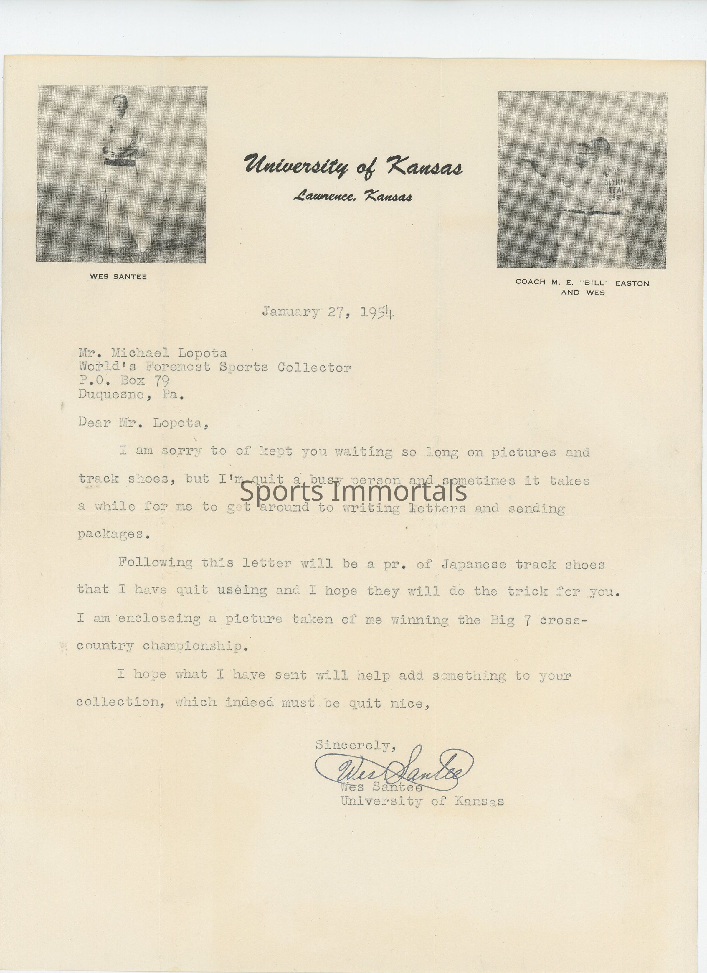 Autographed Photo And Letter To Lopota From Famous Distance Runner