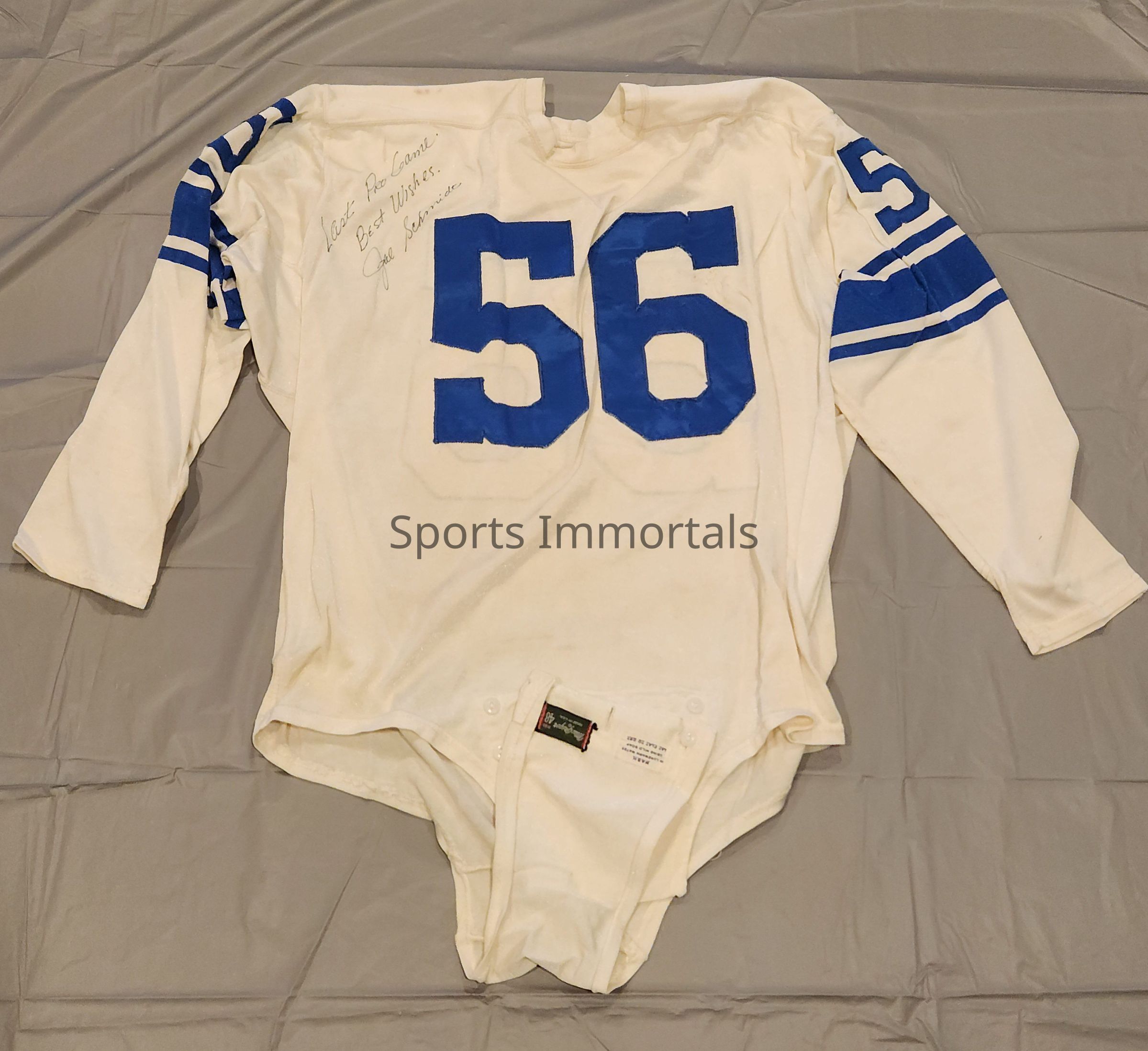 Autographed Game Worn Jersey From Last Pro Game And Autographed Photo To Joel Best Wishes, Autographed Football Shoes, Pads Worn By Schmidt During His Last 2 Games As A Pro For The Det. Lions