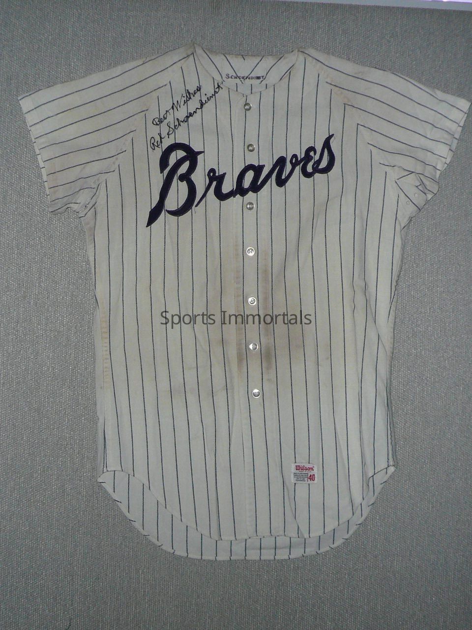1968-1971 Wilson (40) White Button Down. Great Use. #4, "Bw Red Schoendienst" Plus Autographed Photo And Card. Probably worn in Old Timers Game