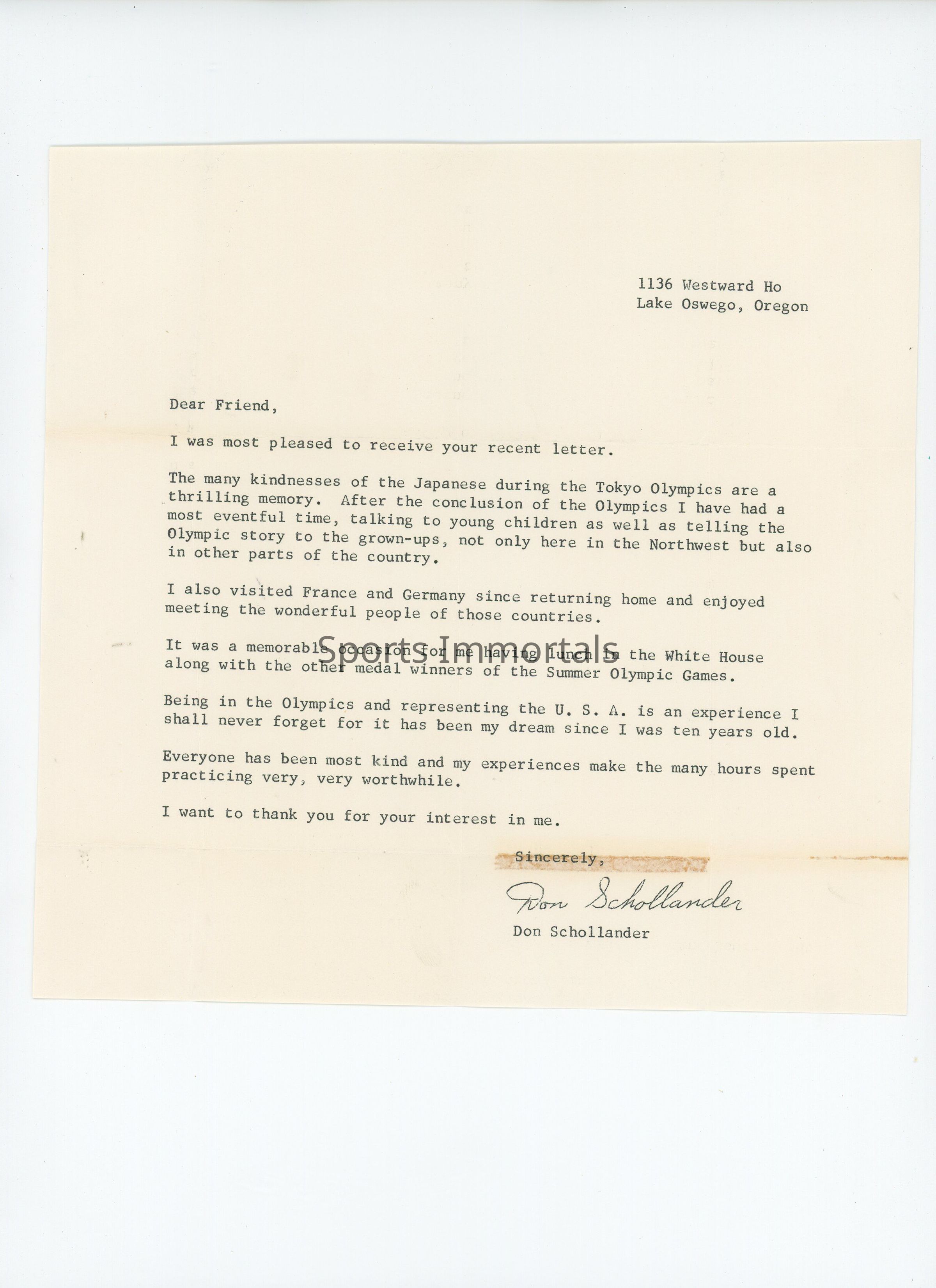 Letter And Autographed Small Photo Of Legendary Swimmer Who Won 4 Gold Medals In Tokyo '64 And One Gold And One Silver In Mexico City '68