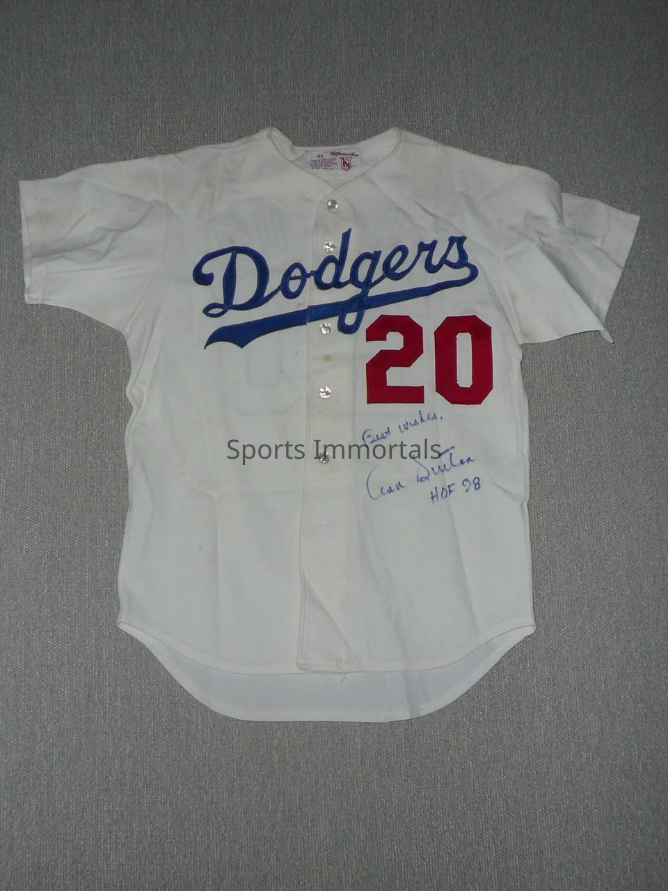 Goodman And Sons (42) White Game Worn Jersey. #20. Button Down. Great Use. Signed Front And Back, "Best Wishes Don Sutton HOF 98"