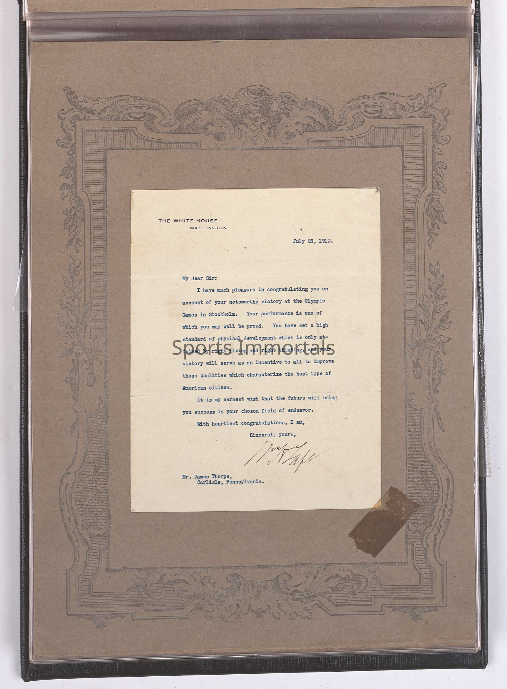 1912 Olympic Album With Photos And Letters Including Letter From President Taft and King of Sweden