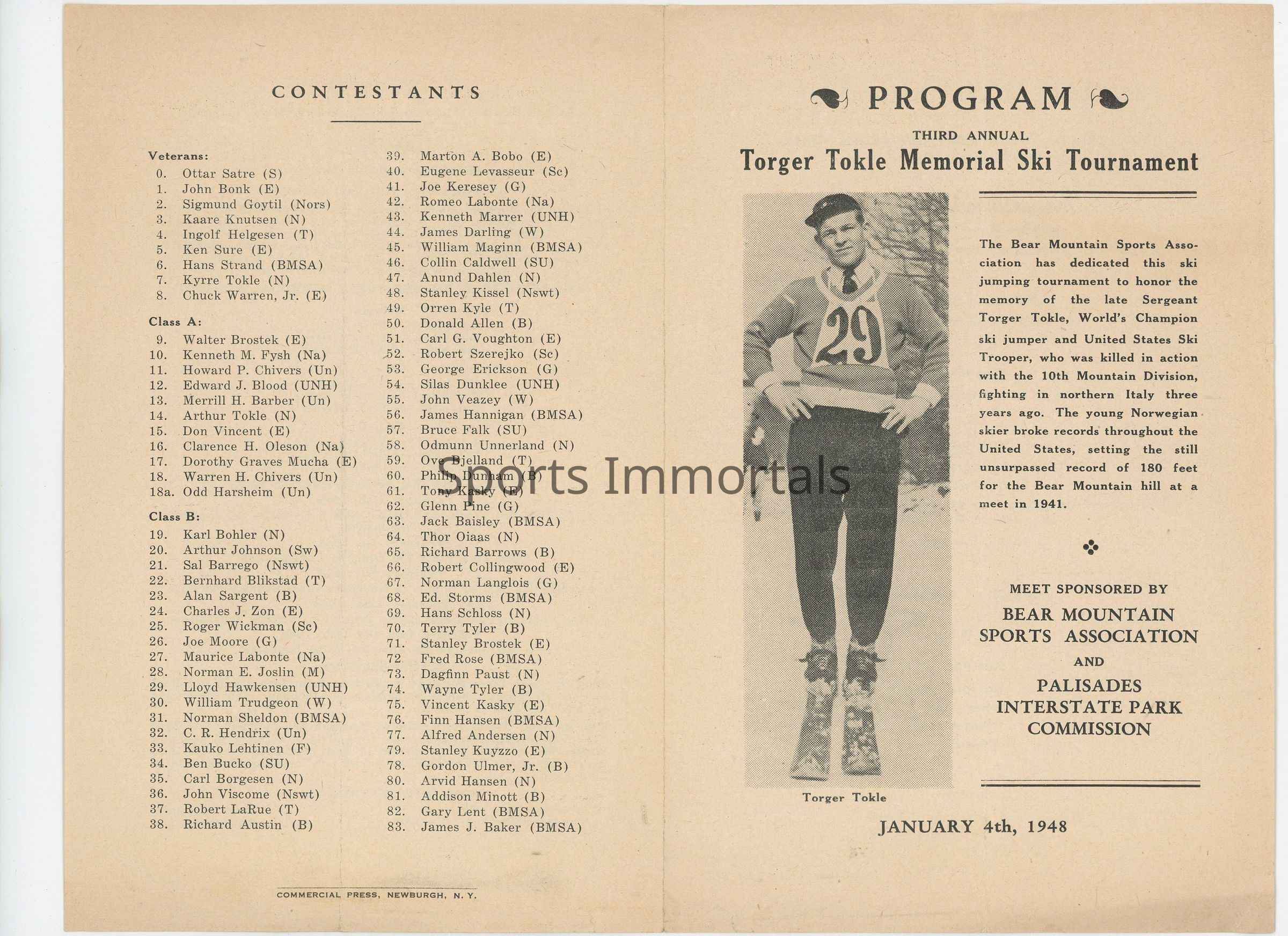 Program From 1948 Memorial Ski 1948 Memorial Ski Tournament
