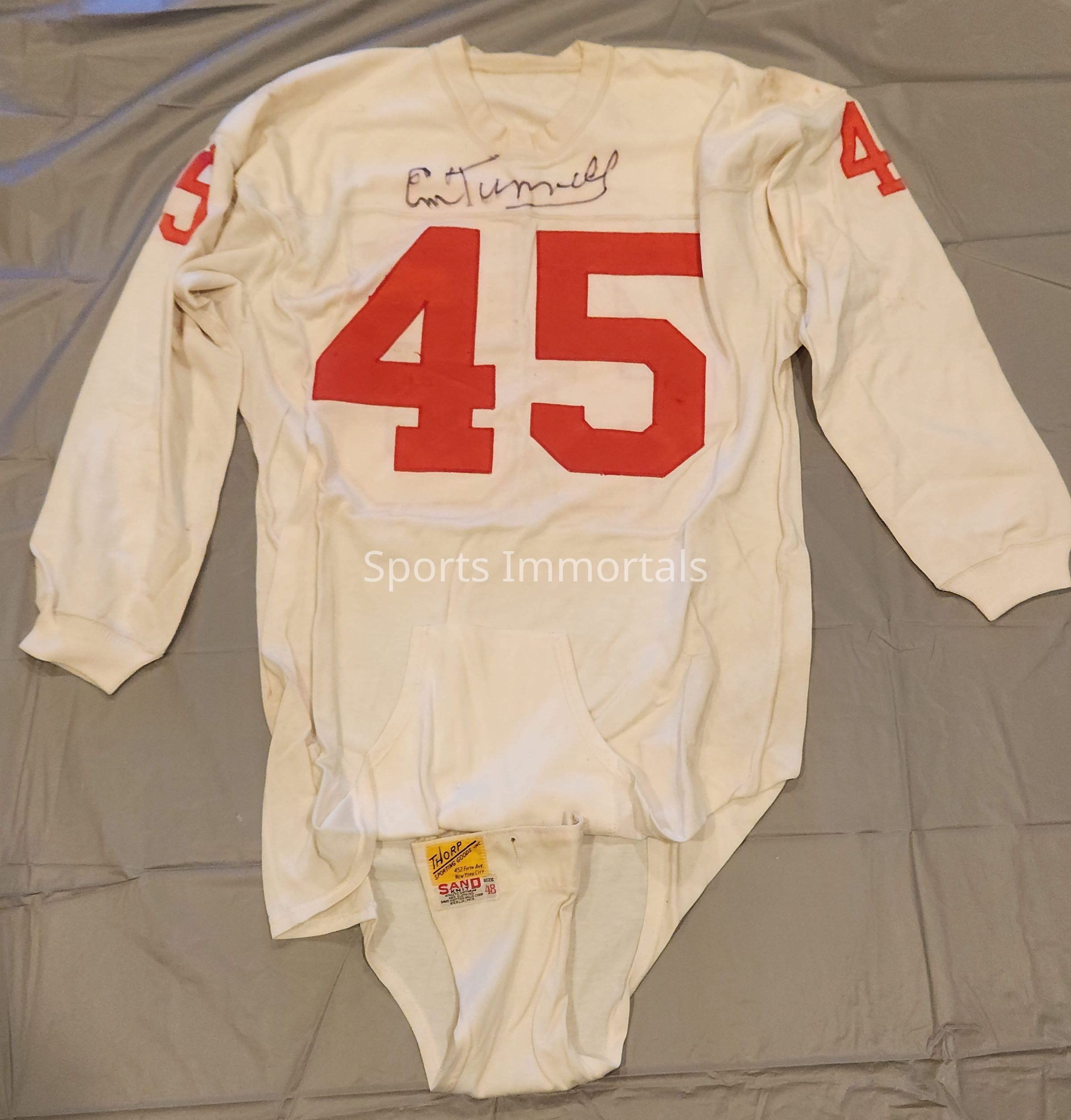 Emlen Tunnell Autographed White Sand Knit Game Jersey