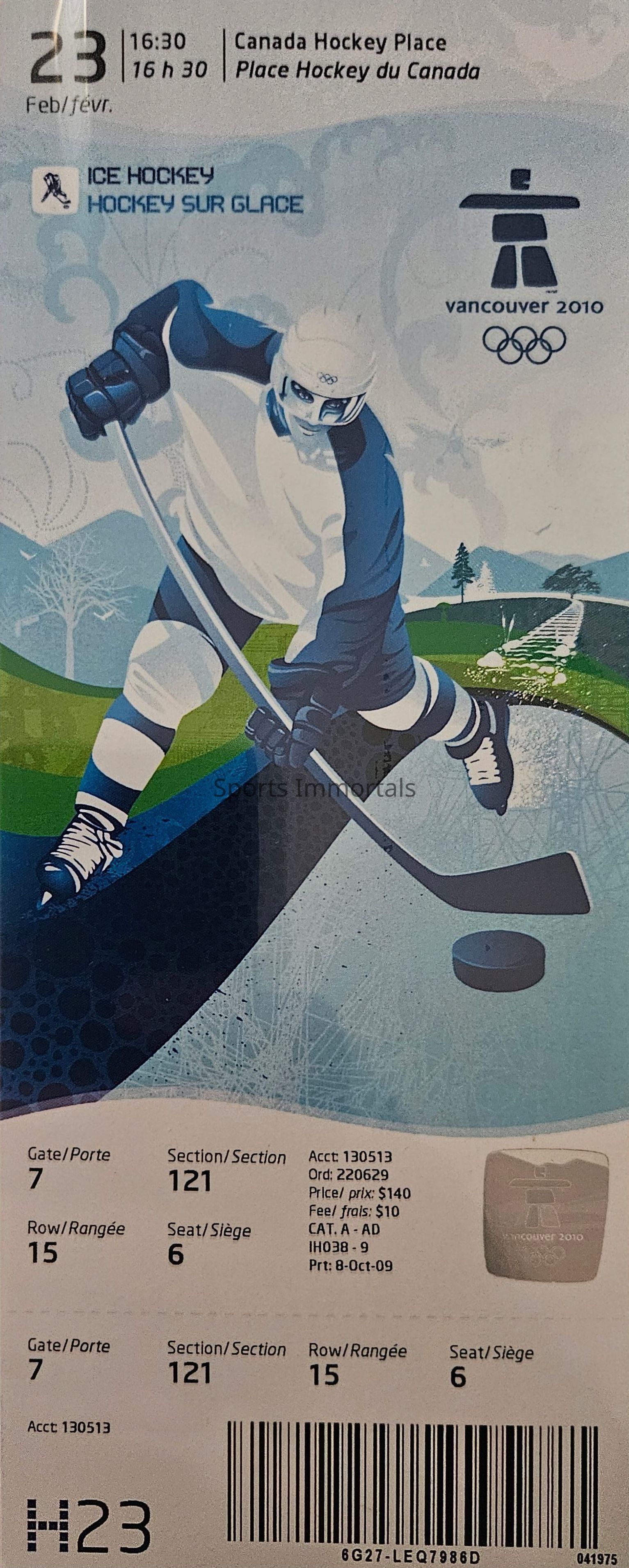 Vancouver Olympics Hockey Ticket