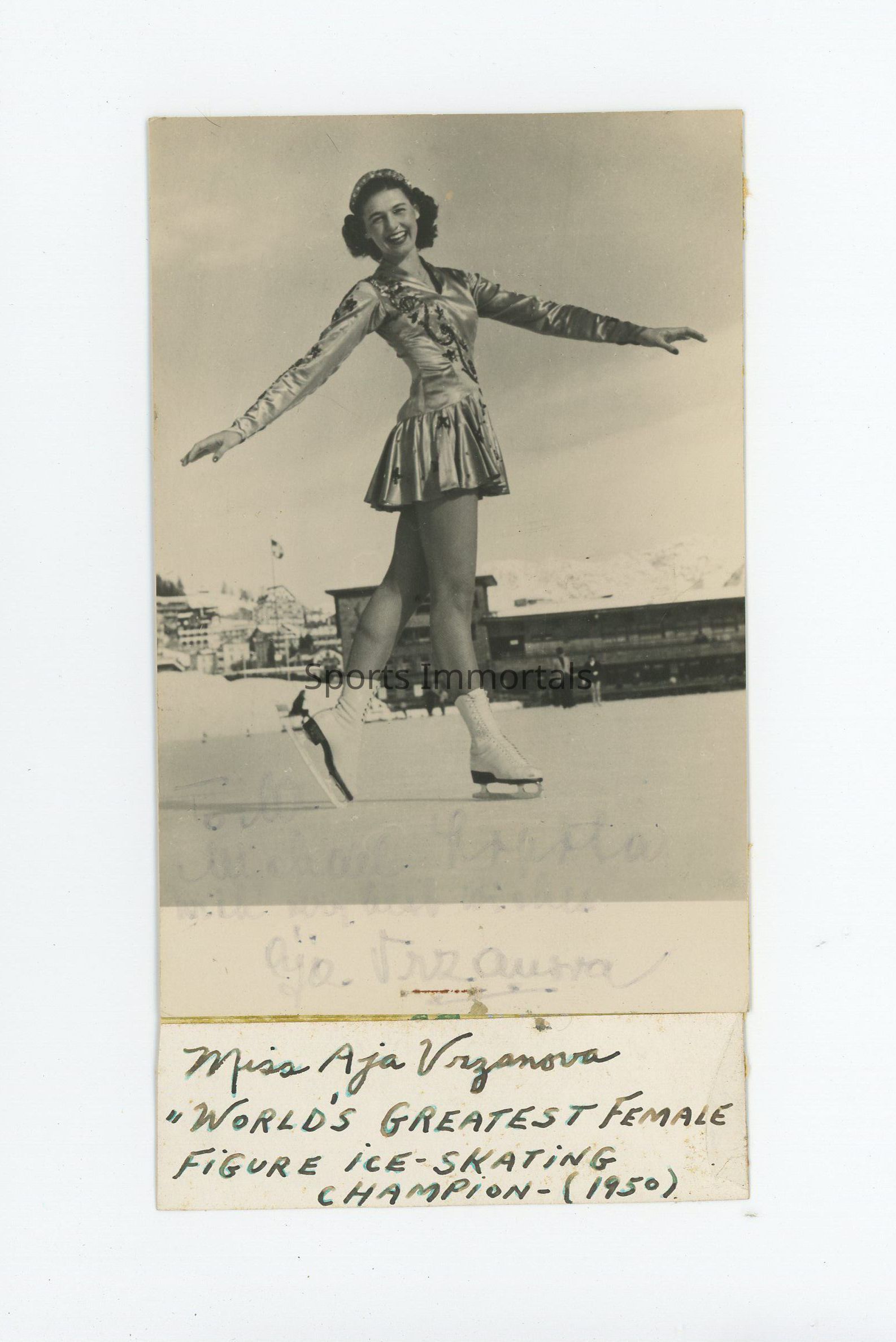 Autographed Photo Of Former Czech Figure Skater. Vrzáňová Is A Two-Time World Champion And 1950 European Champion.