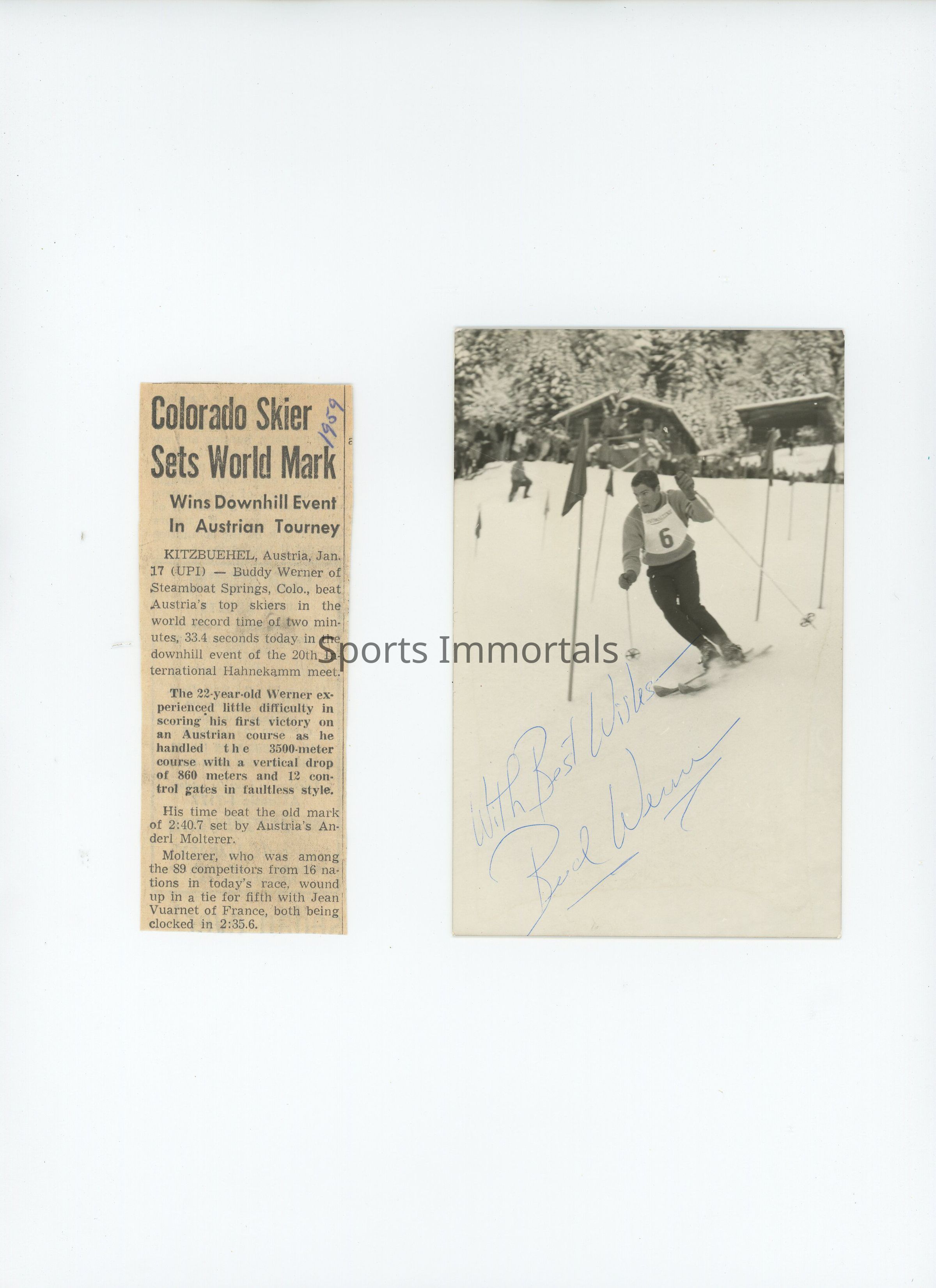 Autographed Photo Of Famous Skier Who Represented Us Ski Team In '56 - '64…Member Of National Ski Hall Of Fame