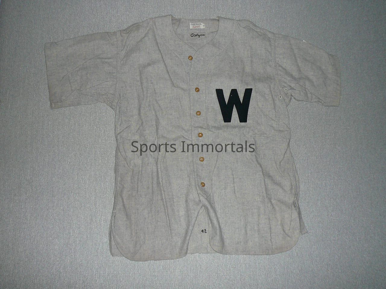 1942 Goldsmith (44) Grey Game Worn Jersey. Name In Collar. #11. 6 Buttons.