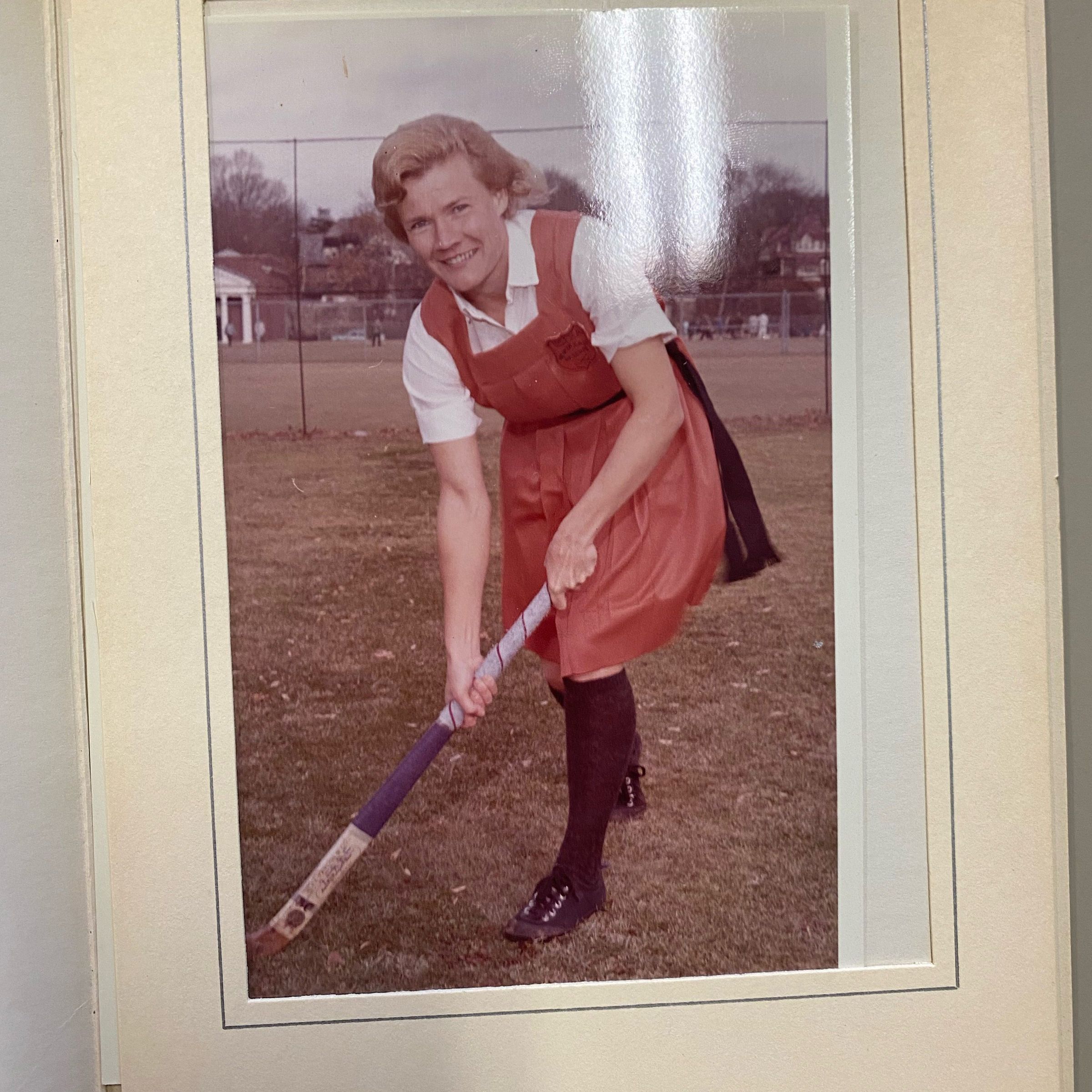 Pat Zerbe playing field hockey, one of the many sports at which she excelled
