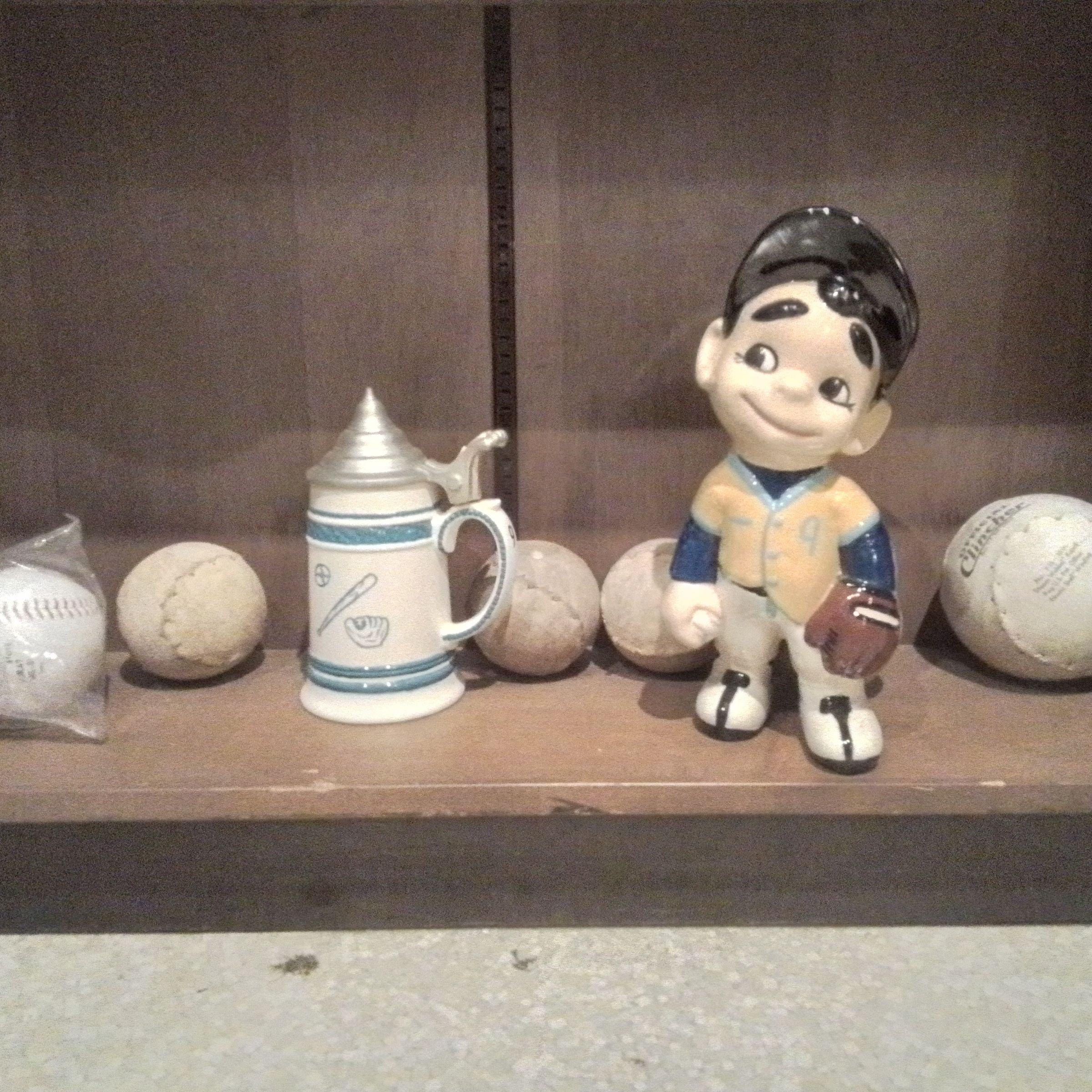 five baseballs, one statue, one small beer steinRelationships