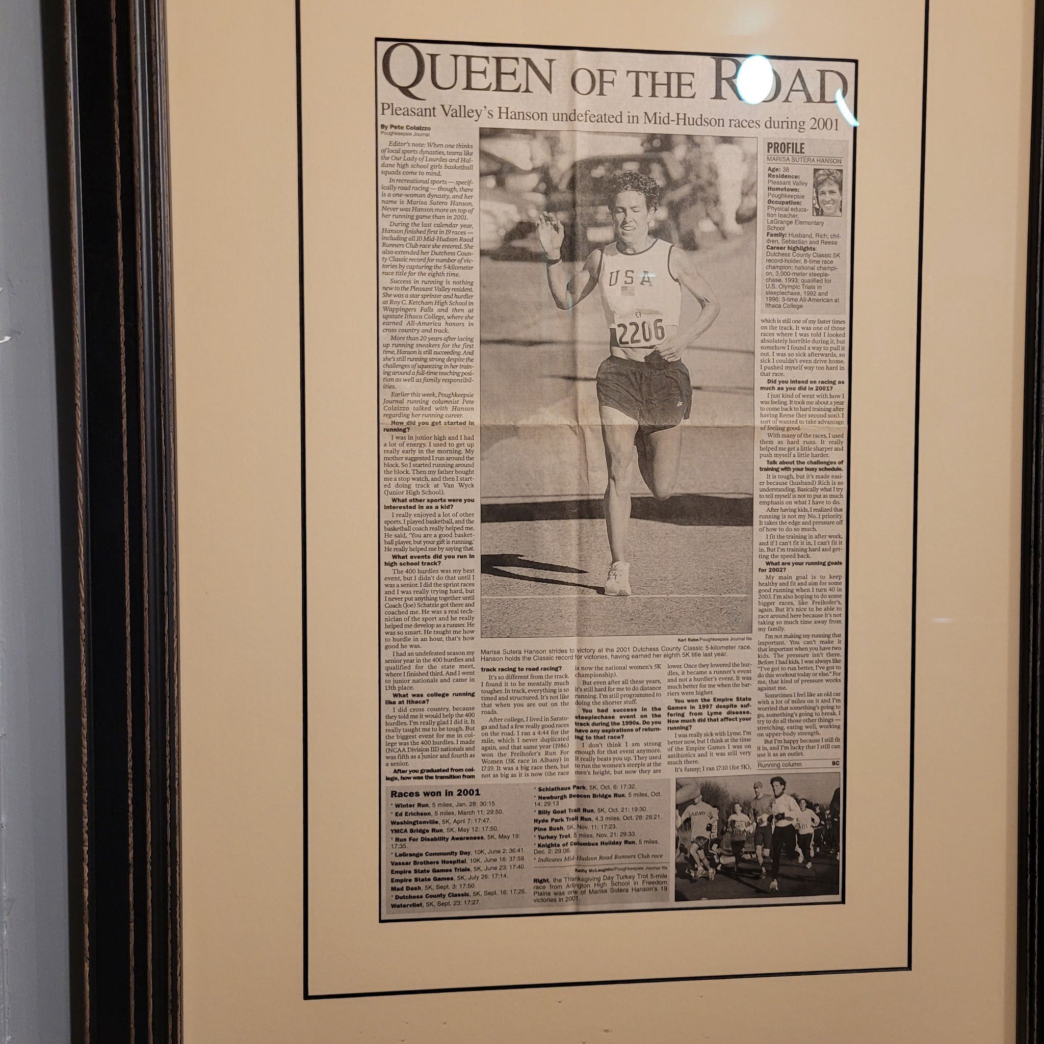An Article Detailing Marisa Strange's races in 2001
