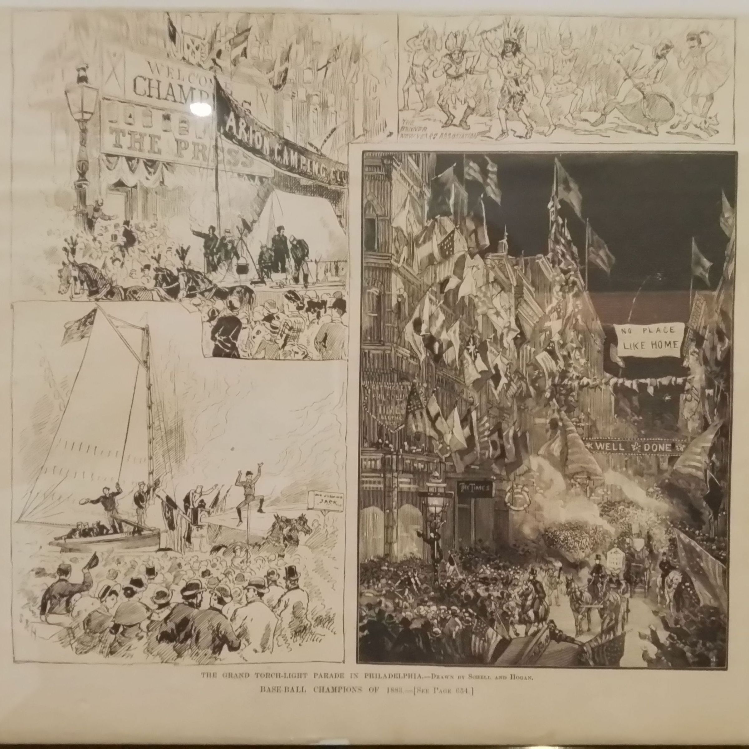 A torch-light parade was held in Philadelphia in 1883 to celebrate the baseball champions of that season.