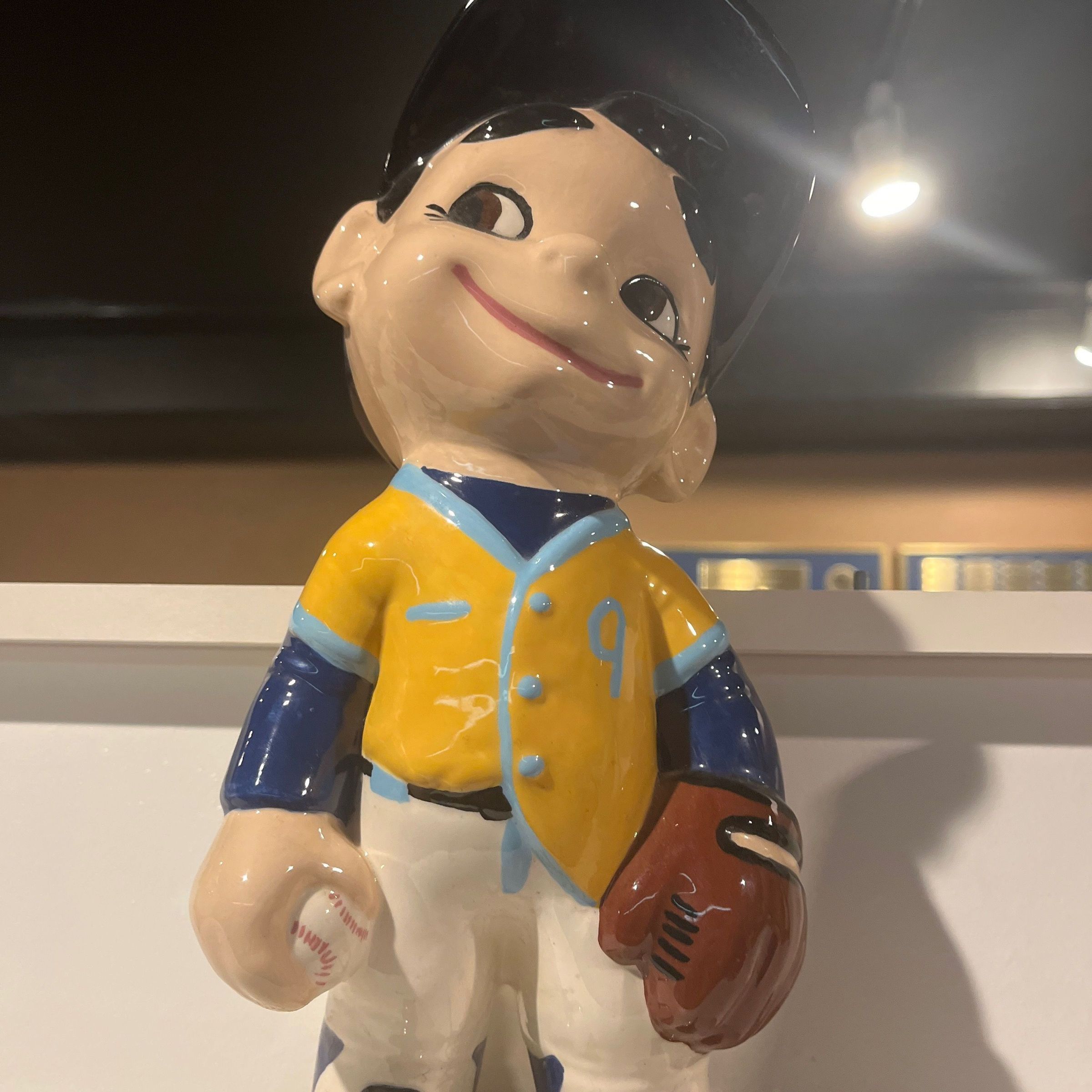 A painted ceramic baseball figurine