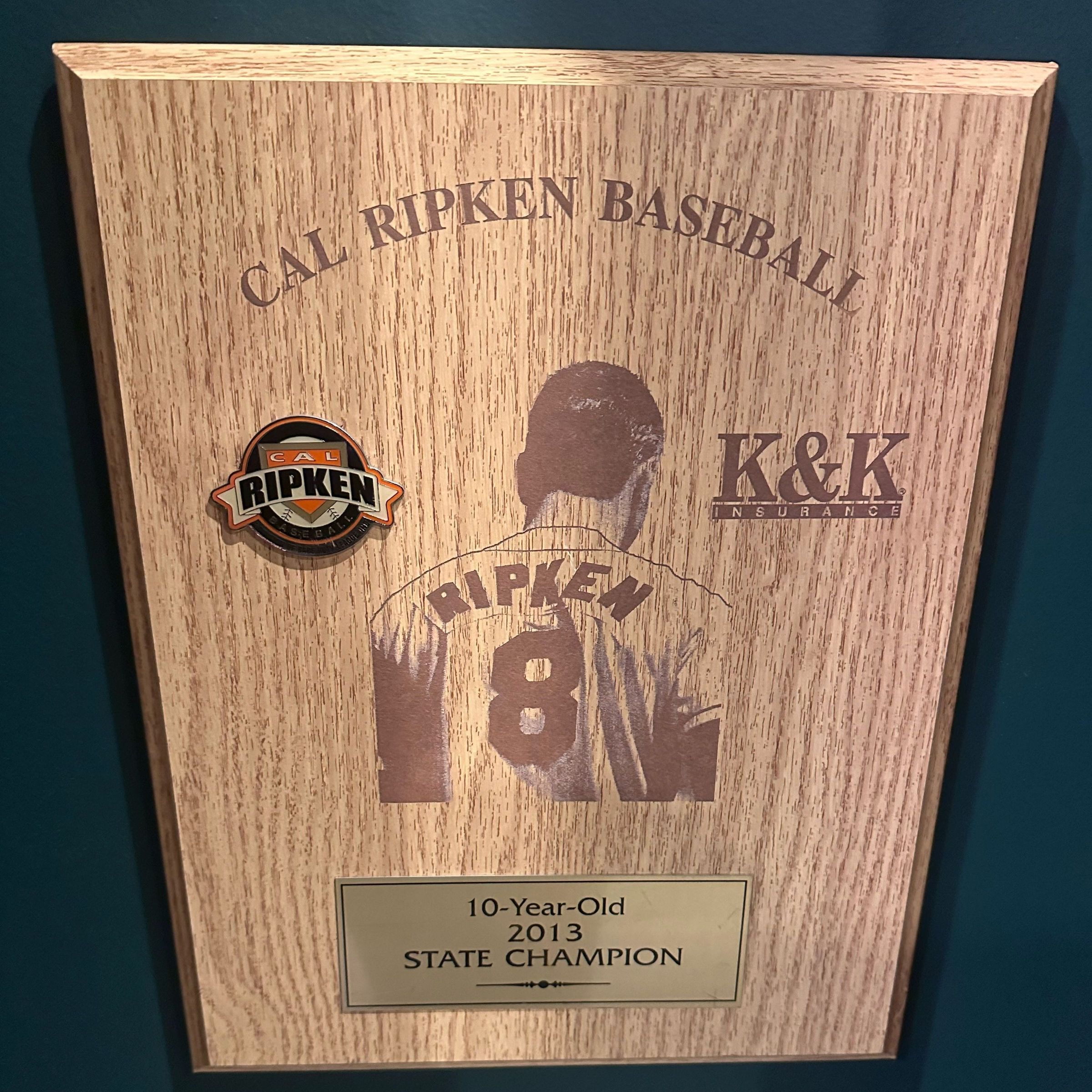 Cal Ripken plaque for 10-Year-Old 2013 State ChampionCollection