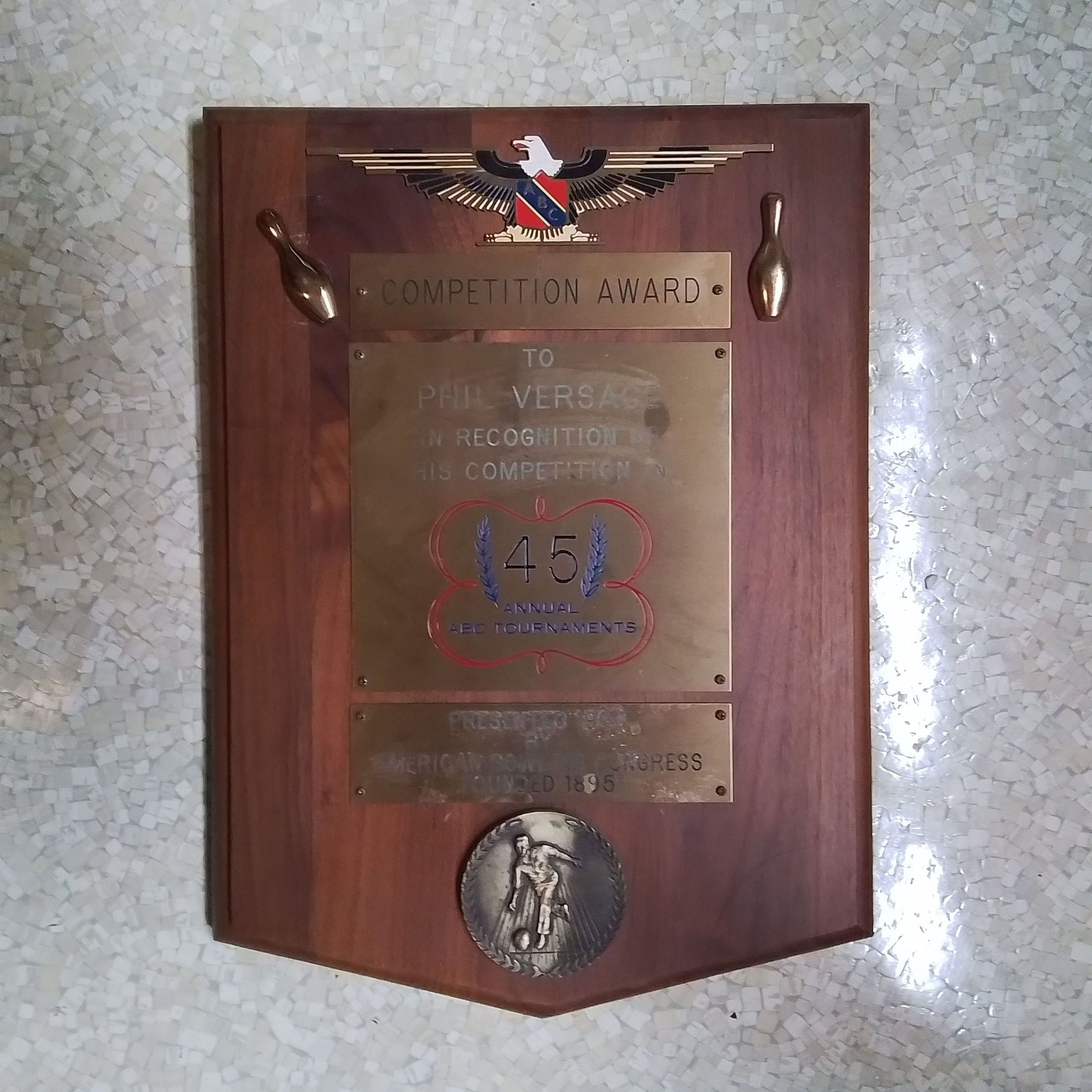 Competition award in recognition for Phil Versace participating in 45 ABC tournamentsEntry/Object ID