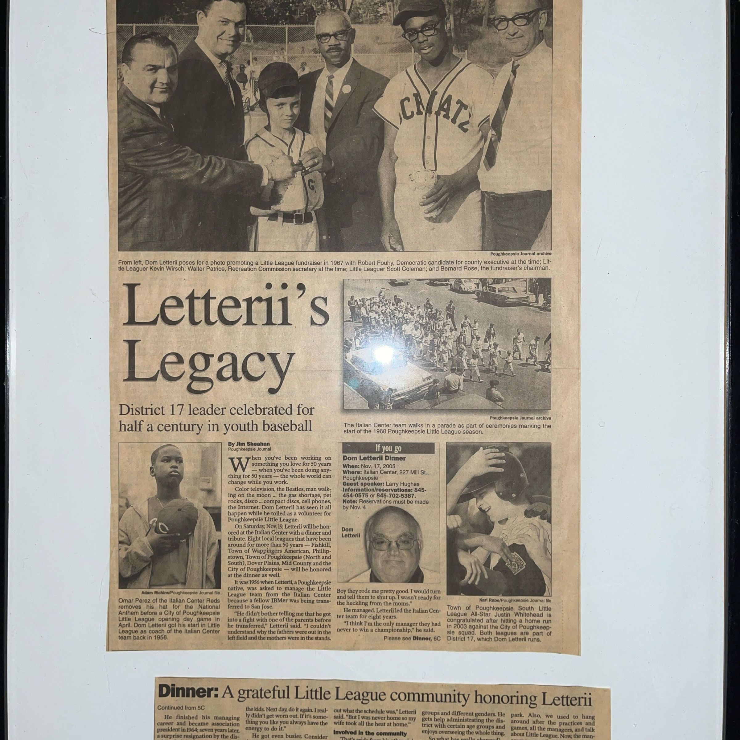 Dominic Letterii's acknowledgement for serving the community, specifically little league, for over 50 years.Collection