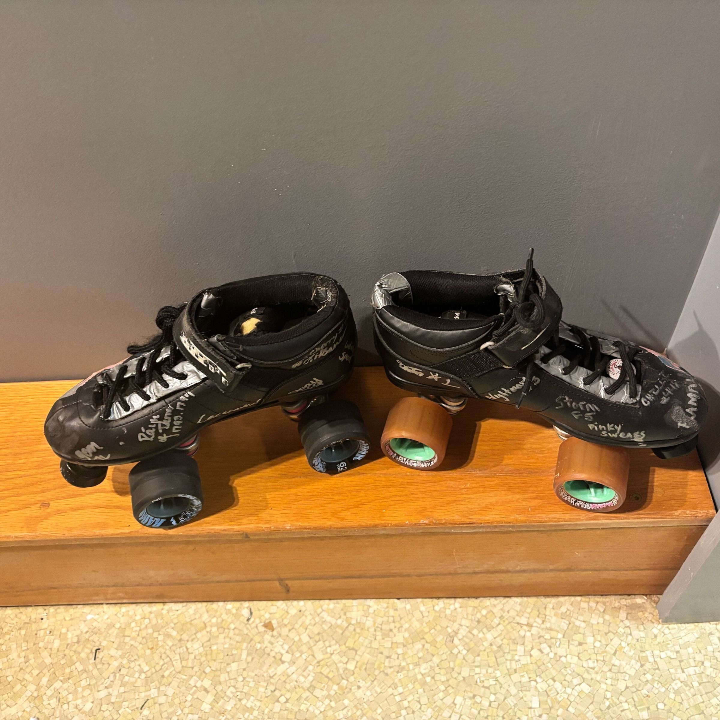 A pair of roller skates from the Hudson Valley Horrors roller derby team, located in Hyde Park.