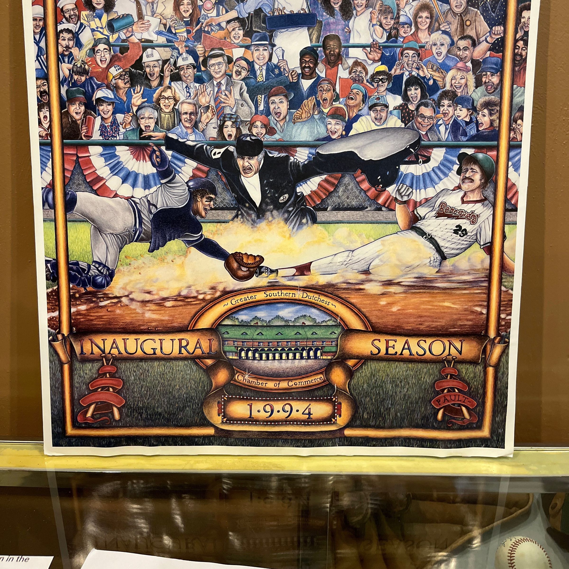 Commemorative poster to celebrate opening day with the Hudson Valley Renegades in their inaugural season, 1994. The poster features caricatures of players and local celebrities.Collection