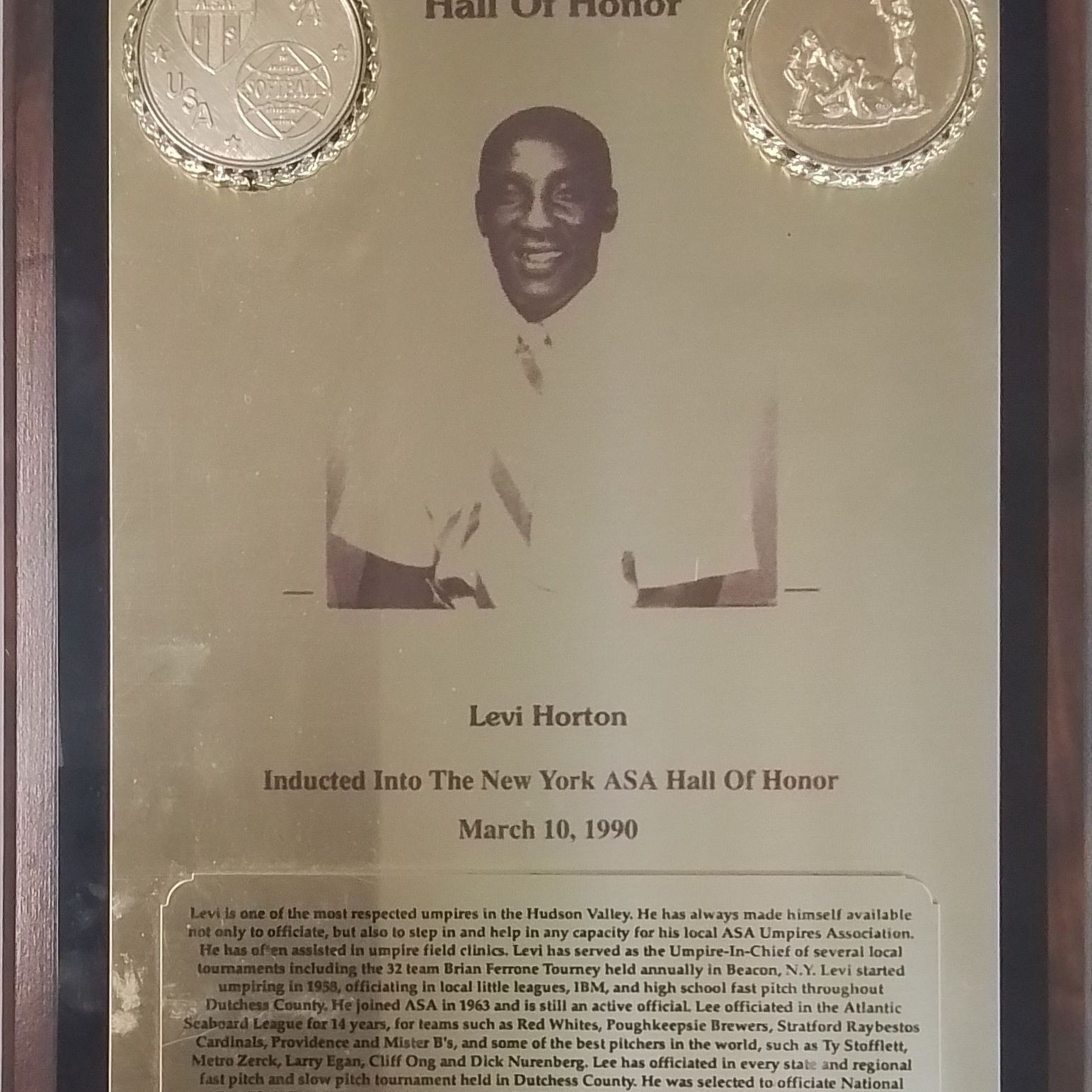 New York State ASA Hall of Honor induction plaque, Levi Horton, March 10, 1990
