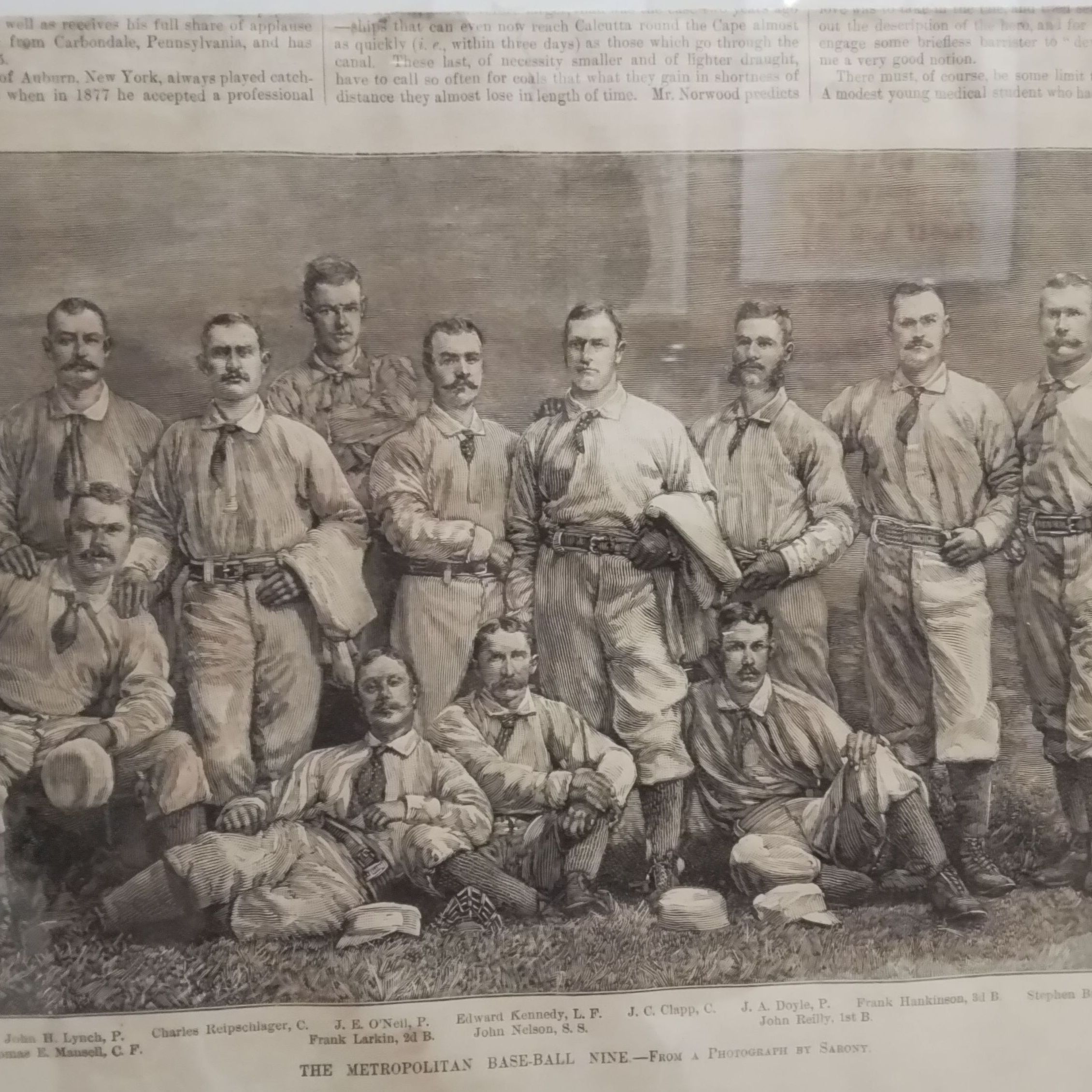 An engraving of the 1882 NY Mets after a photo by Napoleon Sarony. The 1882 season was the last season the team played as an independent club before joining the American Association in 1883.Collection